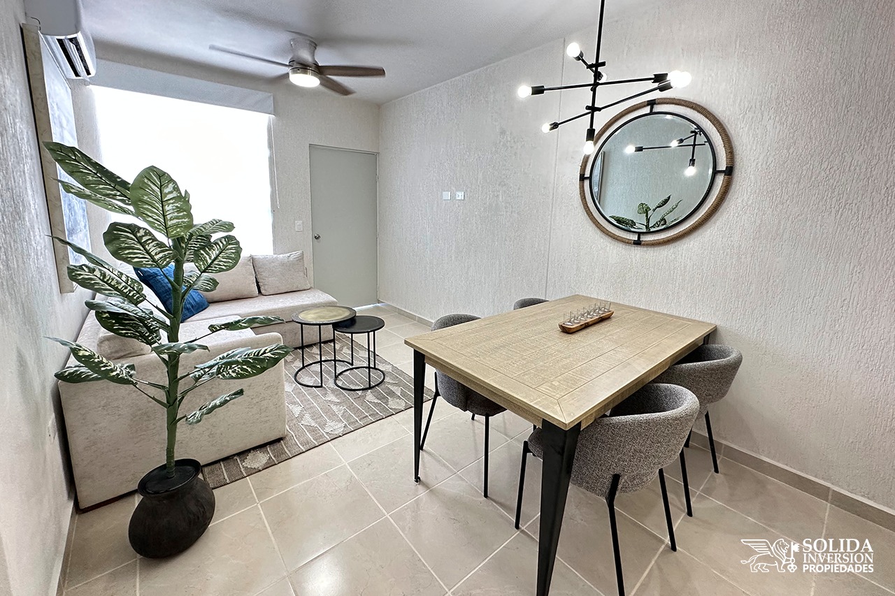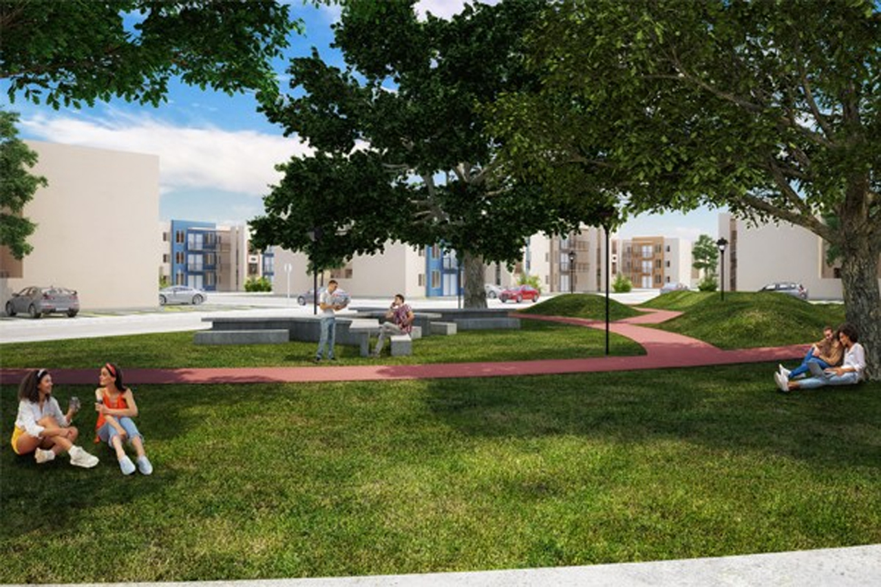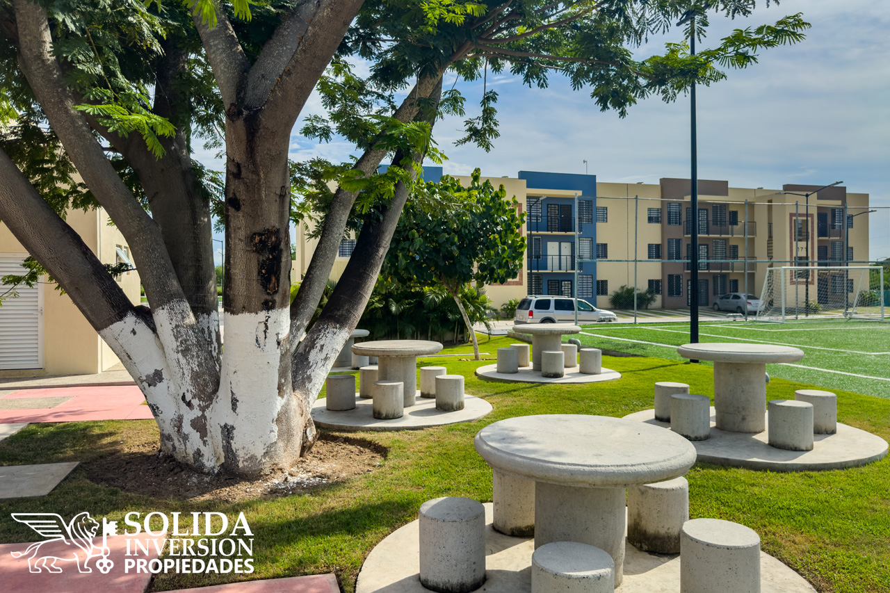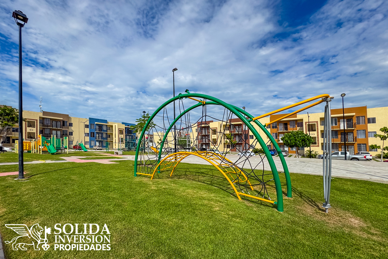 Desarrollo de departamentos con amplias amenidades, como alberca, casa club, parques y áreas verdes.