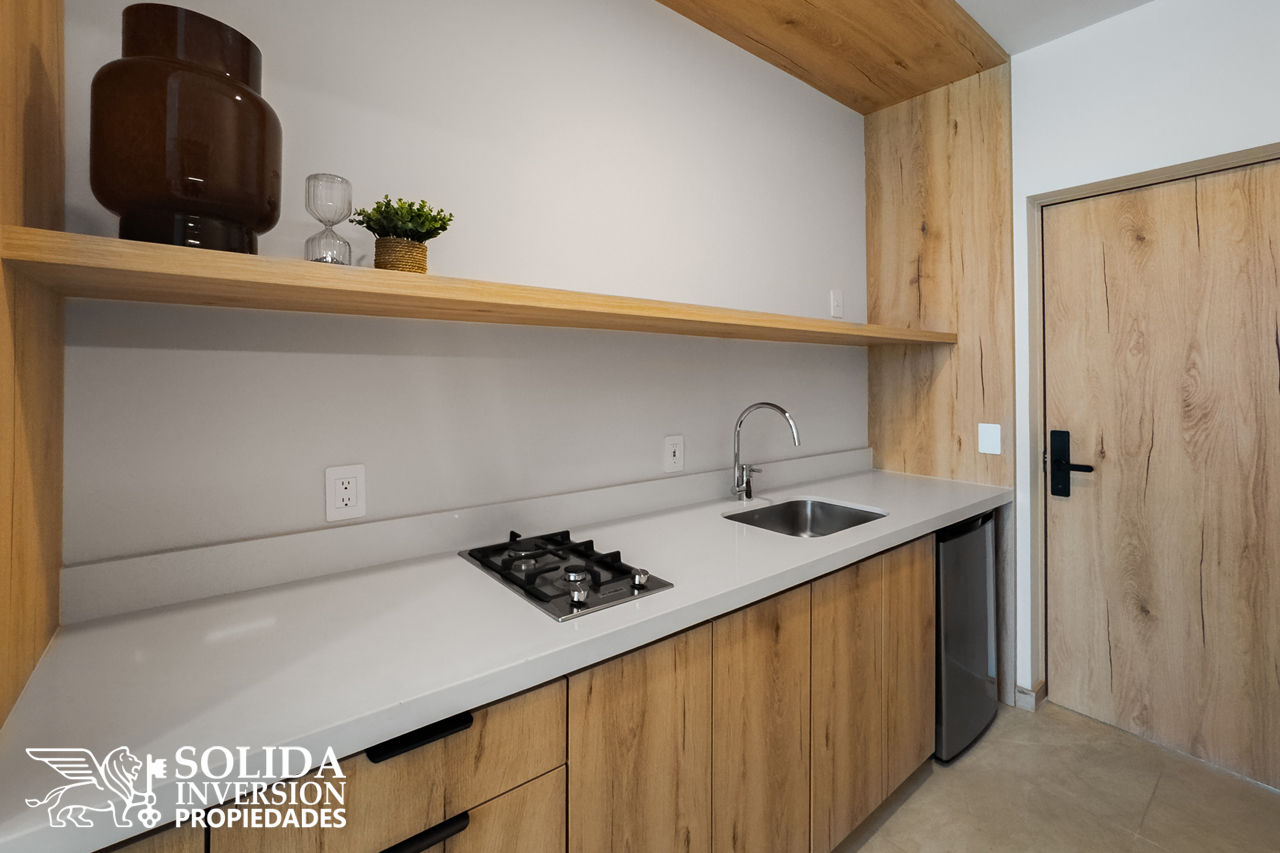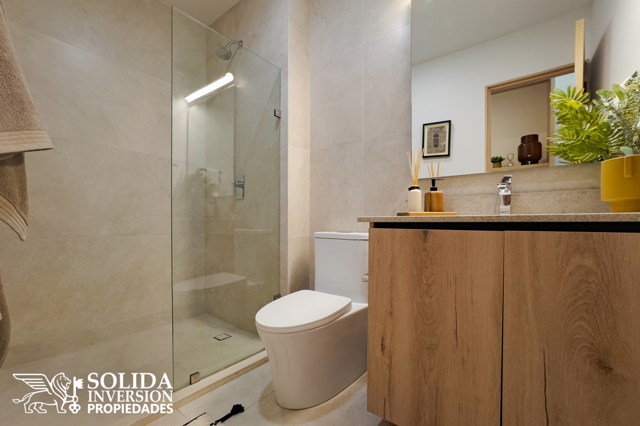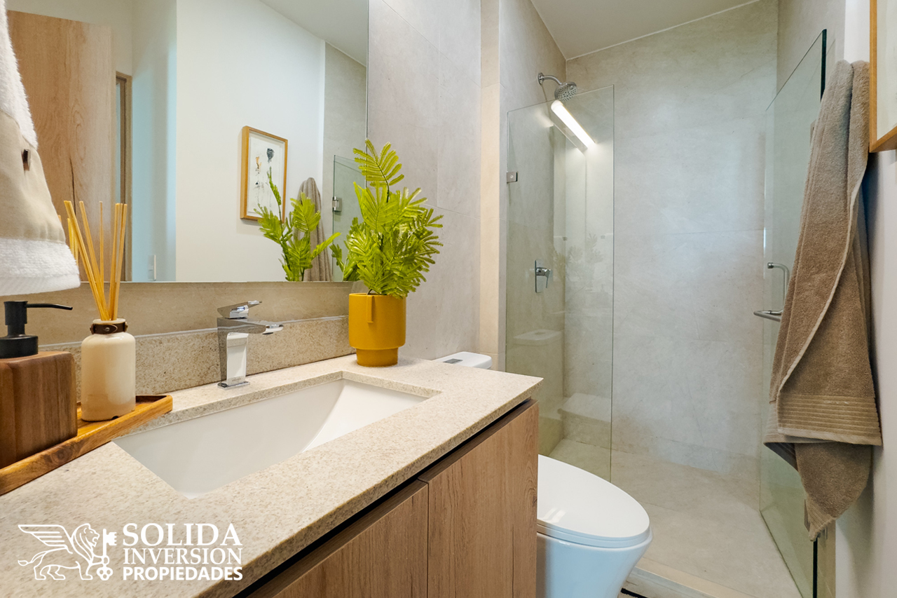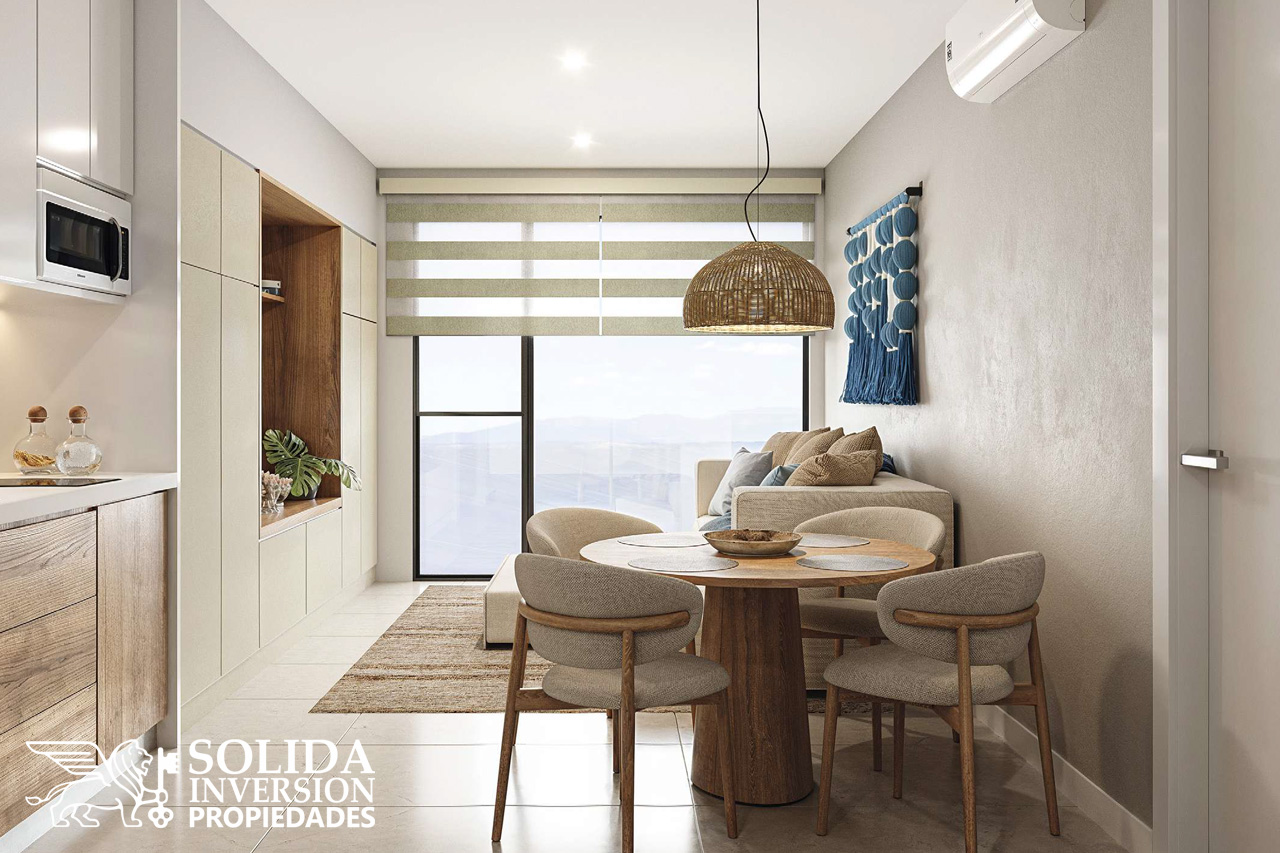 El departamento modelo Cruise*, se compone por una cocina integral, sala, comedor, baño completo en área social, recámara con balcón, clóset, clóset de blancos y baño completo. El departamento tambien cuenta con cuarto de lavado y estacionamiento para un auto.