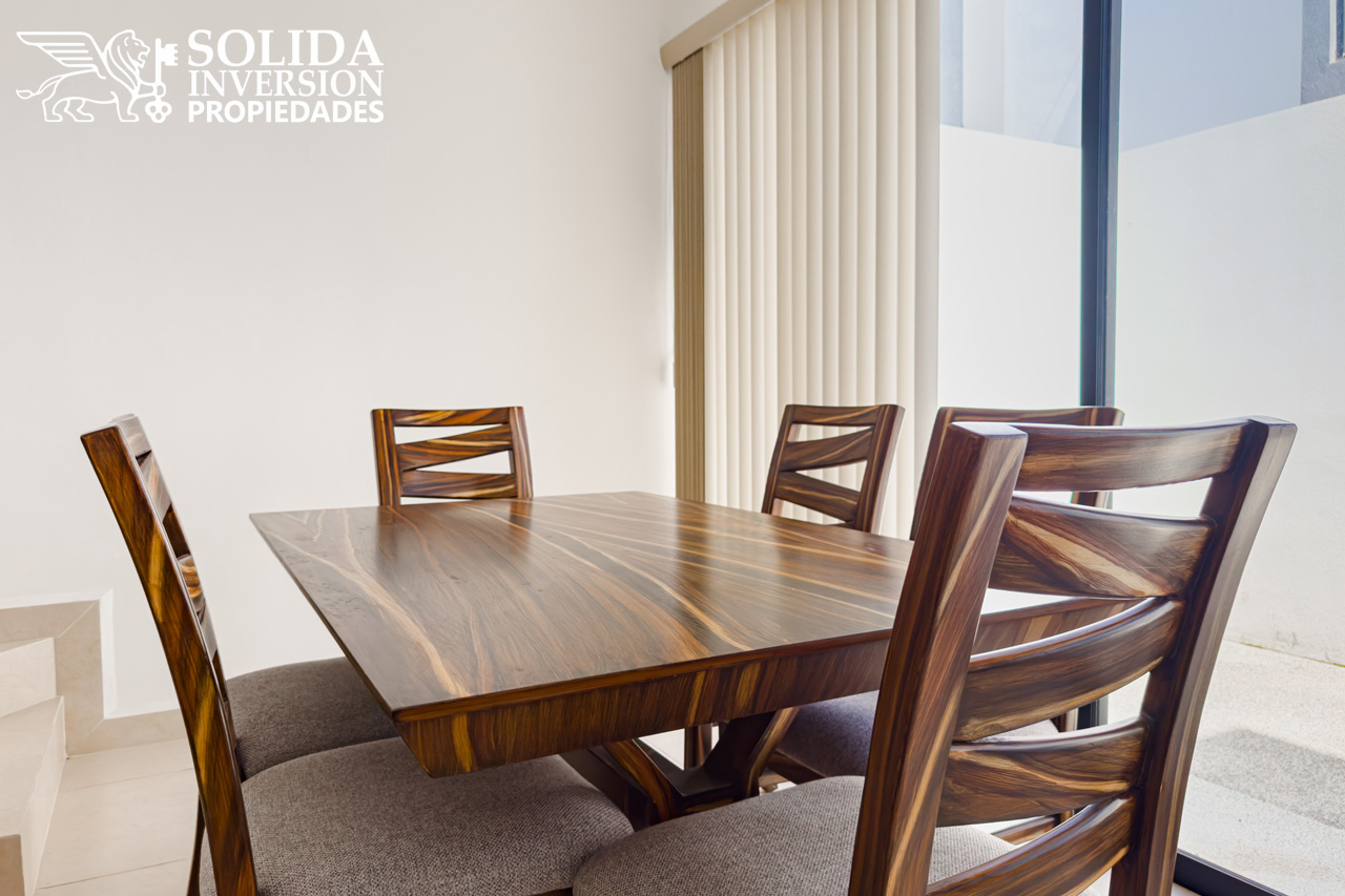 La casa VEREA | PARAÍSO cuenta en su planta baja con una cocina integral, barra desayunadora, comedor y sala con acceso directo al patio trasero y medio baño para el servicio del área social.
