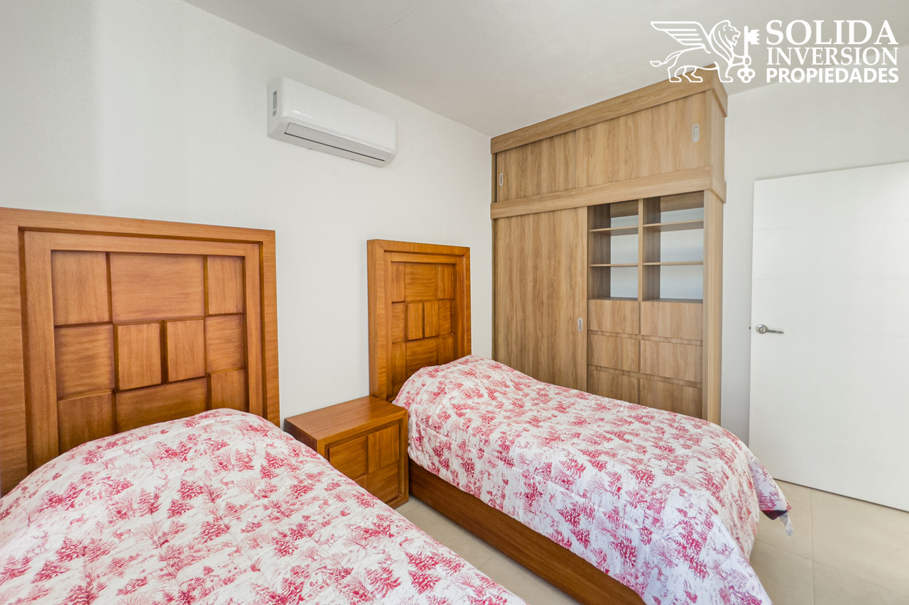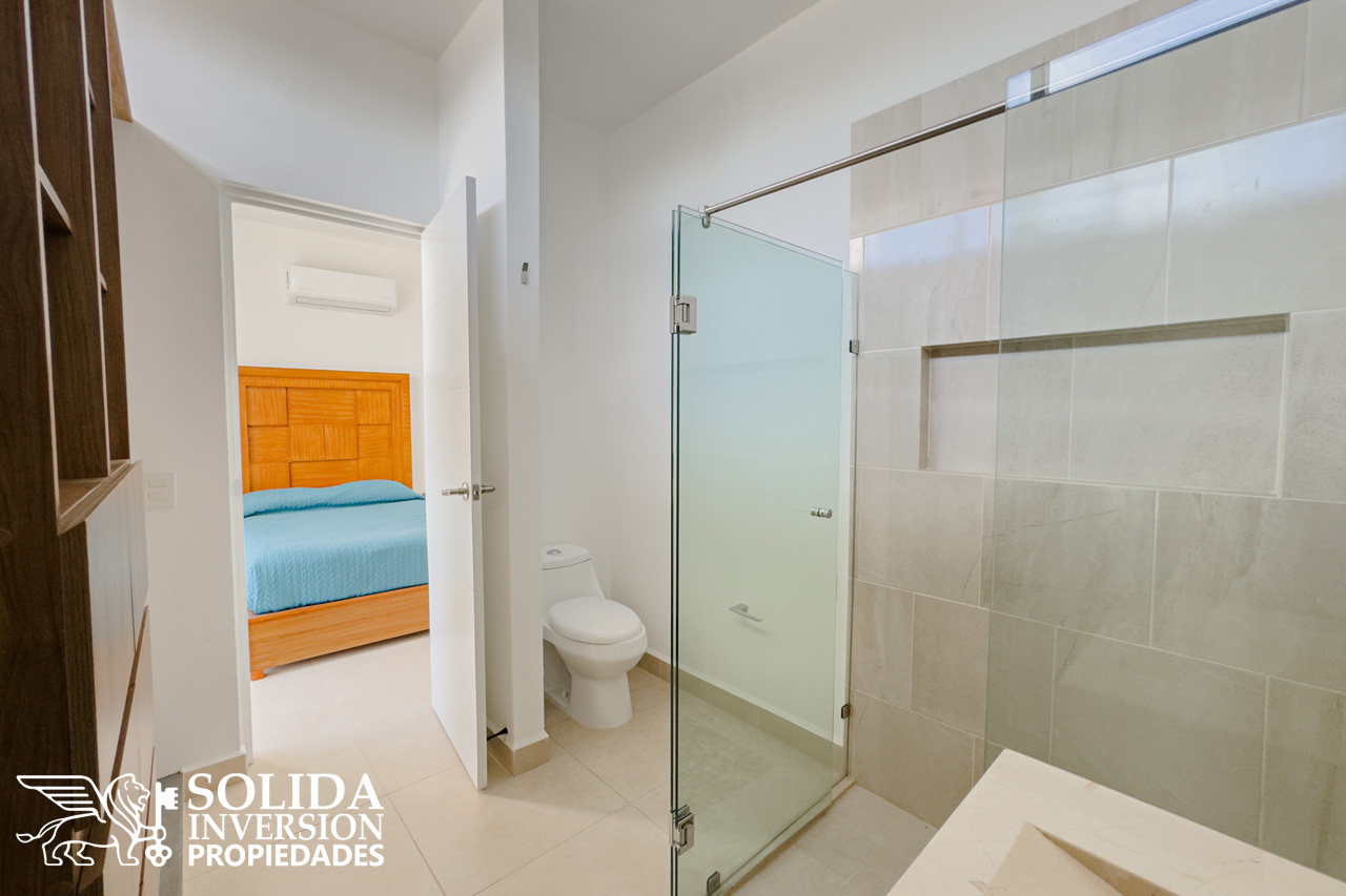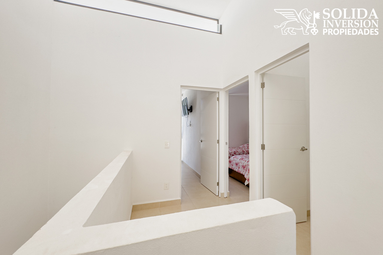En la planta alta se encuentra la recámara principal, la cual cuenta con walkin clóset y un baño completo de doble lavabo, también se ubican dos recámaras secundarias con clóset, las cuales comparten un baño completo. El área de lavado también se localiza en el segundo nivel.