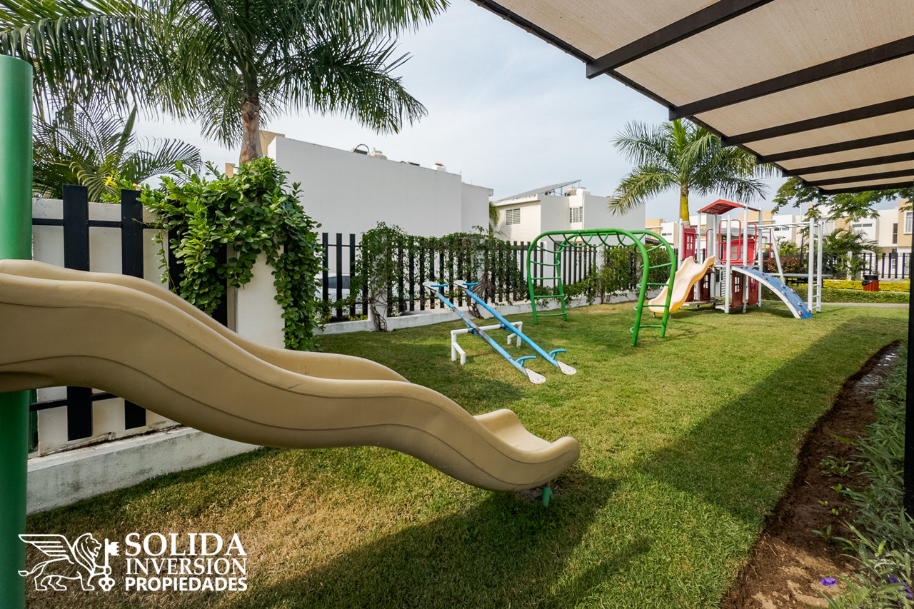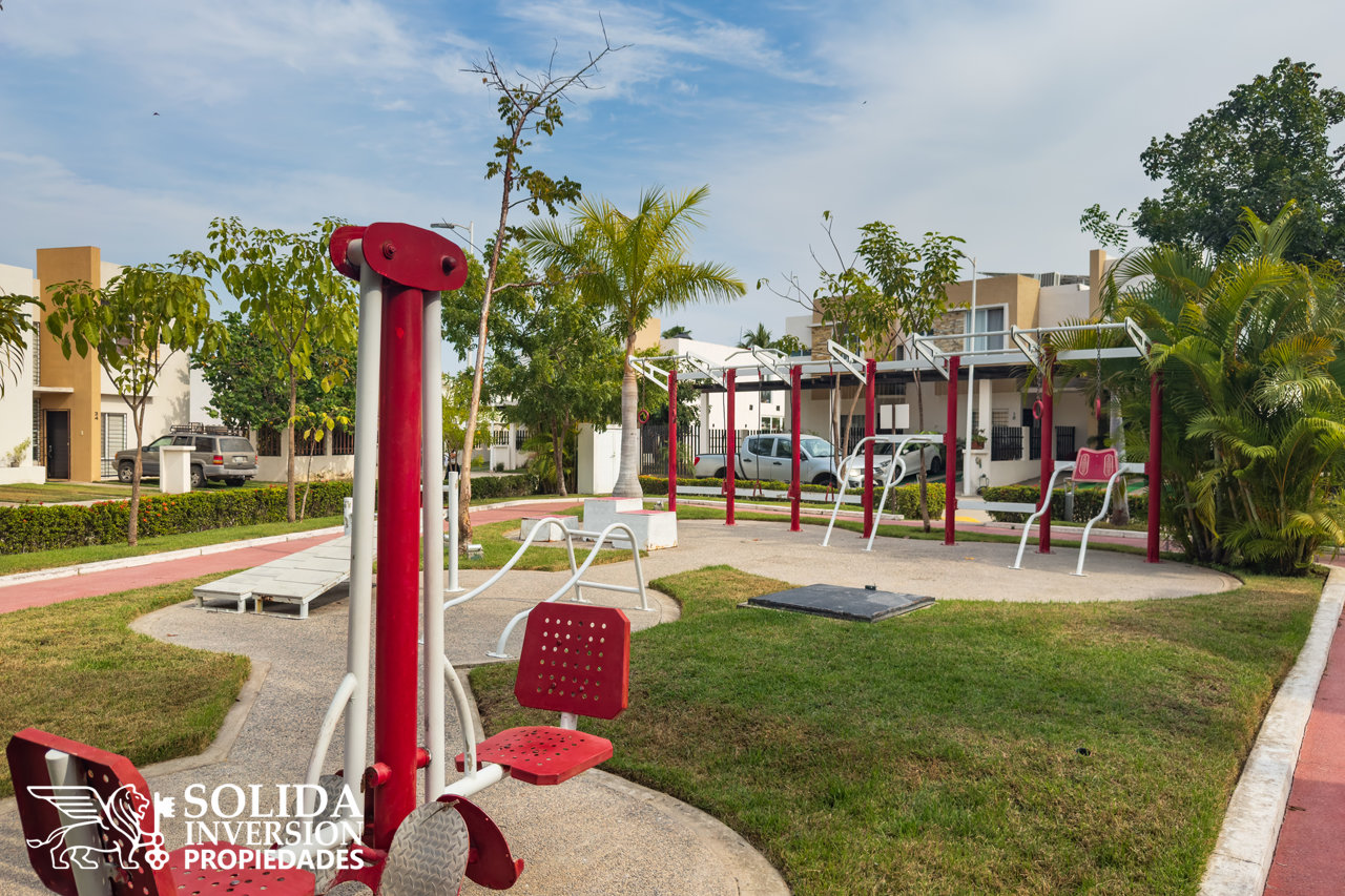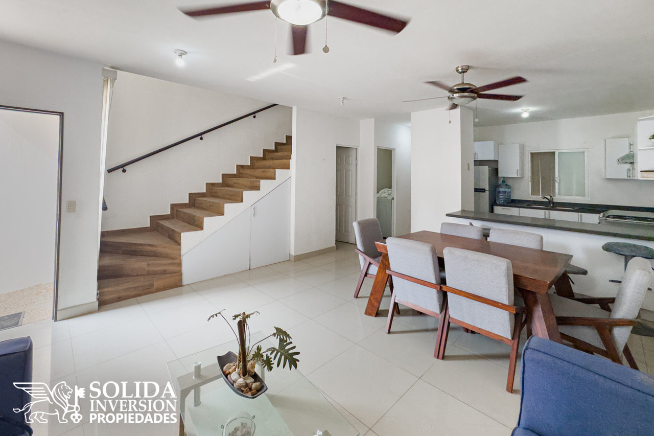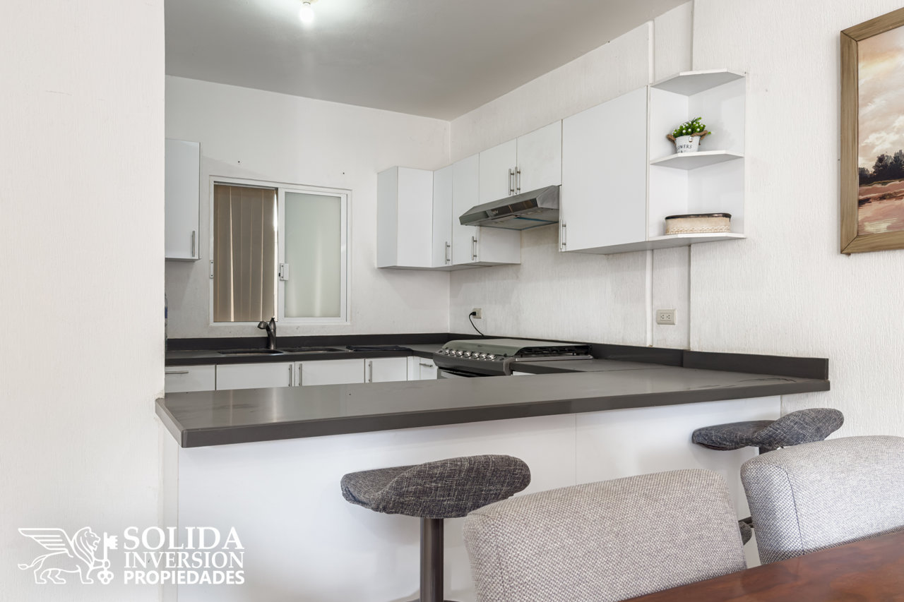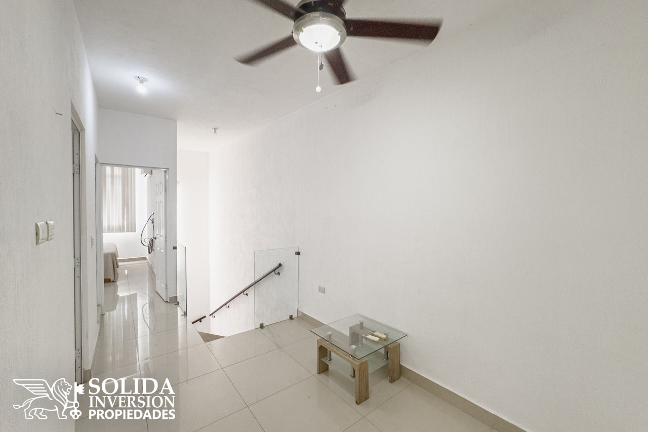 La casa de dos niveles, cuenta en su planta baja con cocina integral con barra, sala, comedor, medio baño en área social, área de lavado cubierta, recámara secundaria y patio de servicio. En el segundo nivel encontrarás, la recámara principal con vestidor y baño completo, así como dos recámaras secundarias que comparten un baño completo.