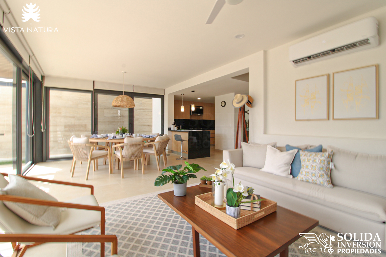 VISTA NATURA es un desarrollo horizontal de 56 residencias en un terreno de más de dos hectáreas, ubicado sobre el boulevard Costero, también conocido como Paseo de los Cocoteros, una de las zonas con mayor crecimiento, plusvalía y exclusividad del destino, dentro del Condominio Maestro Los Flamingos, en Nuevo Vallarta, Nayarit.