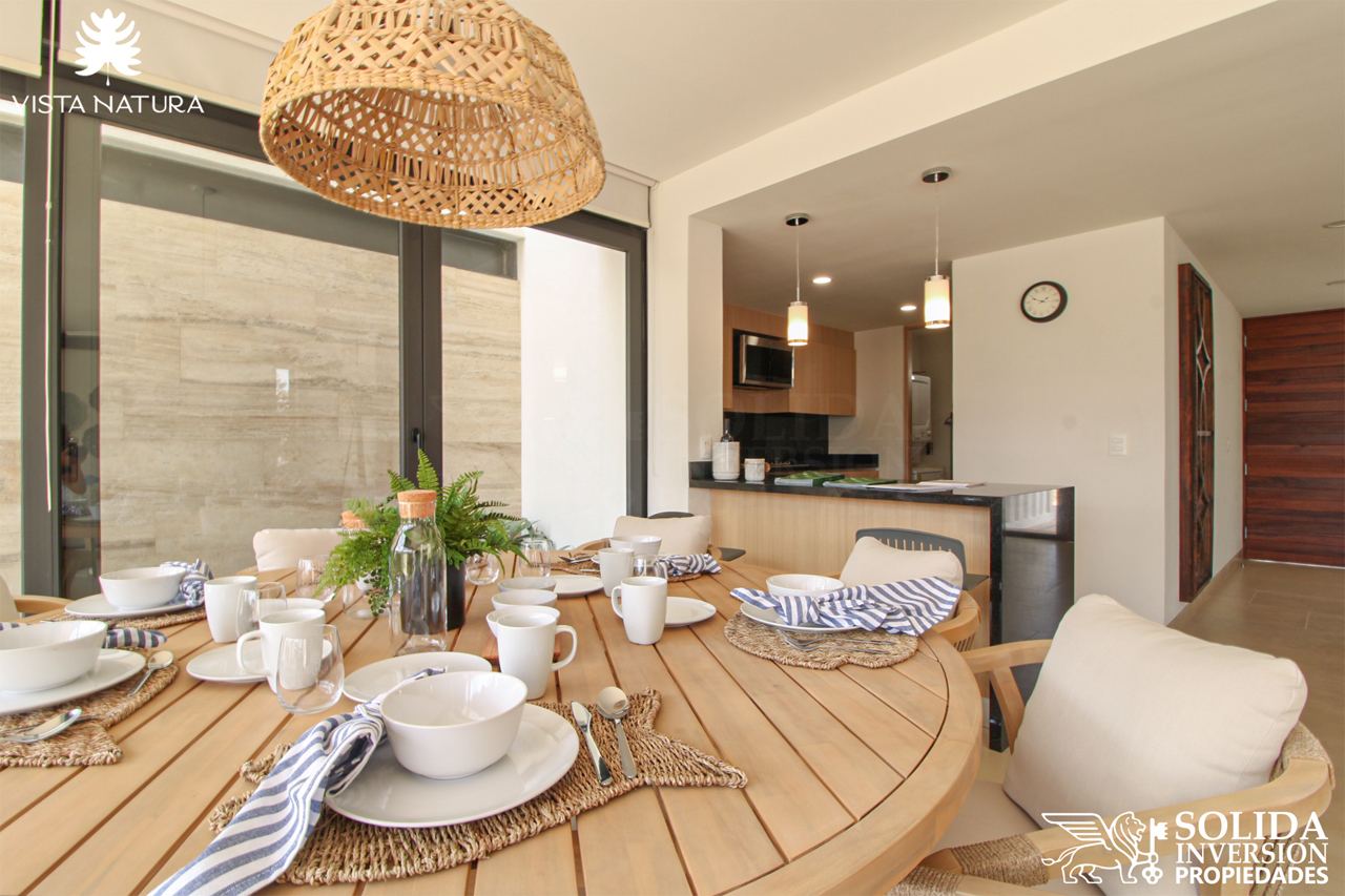 Las principales amenidades que ofrece VISTA NATURA son alberca, jacuzzi, chapoteadero, ludoteca, gimnasio, terraza de yoga, salones de usos múltiples, centro de negocios, terraza con asador, área de snack bar, entre otras.