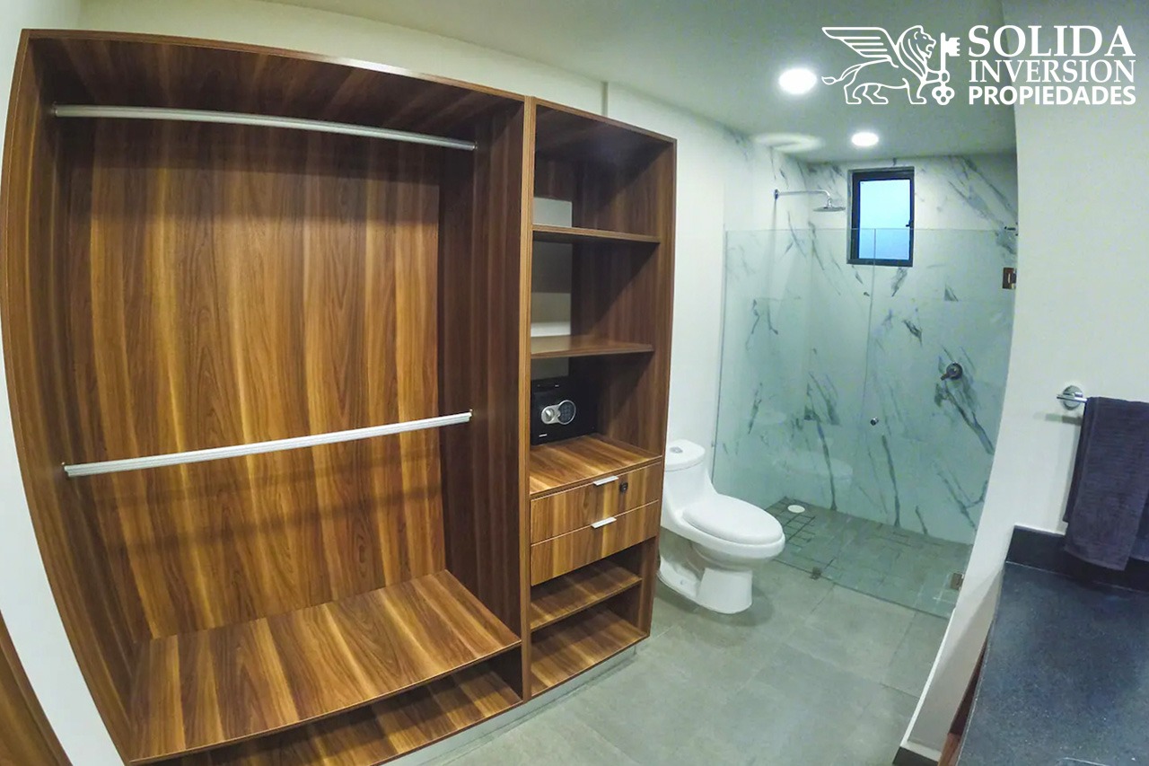 Ubicado en un tercer nivel con vista a la avenida, el departamento KUMARÚ | 300 consta de dos recámaras, la principal con walkin clóset y baño completo, la secundaria con clóset y baño completo, ademas ambas con acceso directo a la terraza.