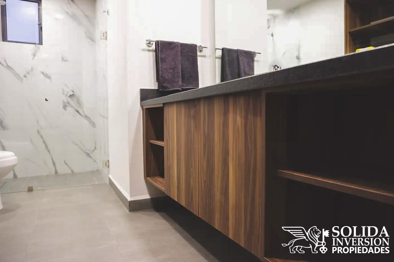 El departamento también cuenta con cocina integral, comedor, sala con acceso a terraza, medio baño en áreas social, amplia terraza en L, cuarto de lavado y estacionamiento subterráneo para un auto.