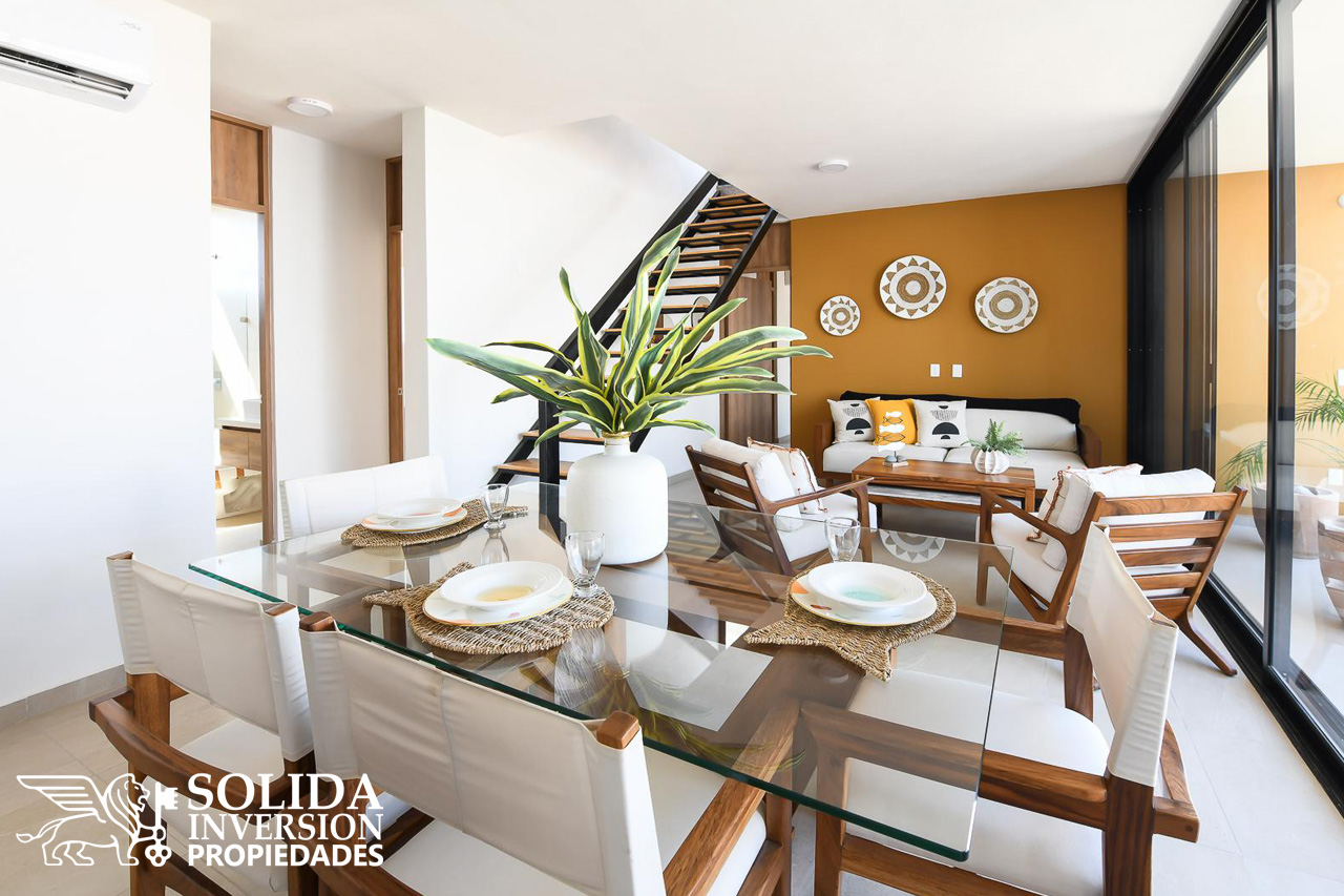 El departamento A-22 modelo Palmito*, cuenta con dos recámaras y dos baños completos. Ubicado en un segundo nivel.