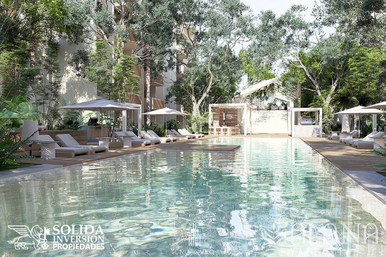 Departamentos de 1, 2 y 3 recámaras, desde 56 m2 hasta 114 m2, distribuidos en 7 torres de 6 niveles, con más de 20 amenidades. Con un área comercial al frente, que te permitirá gozar de todos los servicios a distancia caminando. El único proyecto en la zona que contará con su propio pozo de agua.