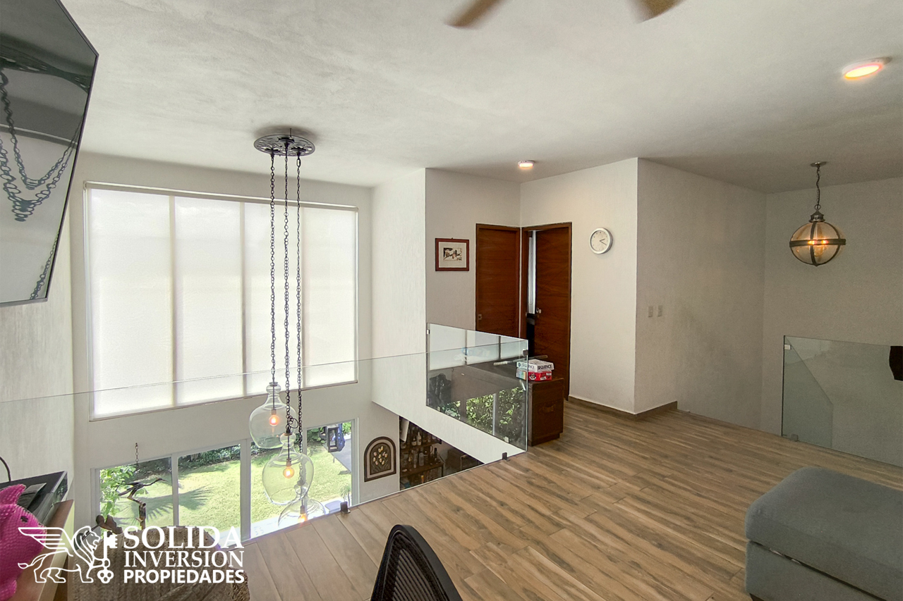En la planta alta se ubica la recámara principal con vestidor y baño completo de doble lavabo, una segunda recámara secundaria, un espacio flex o sala de estar, el área de lavado y un baño completo de uso común. Al frente de la casa se encuentran dos espacios semi techados de estacionamiento.