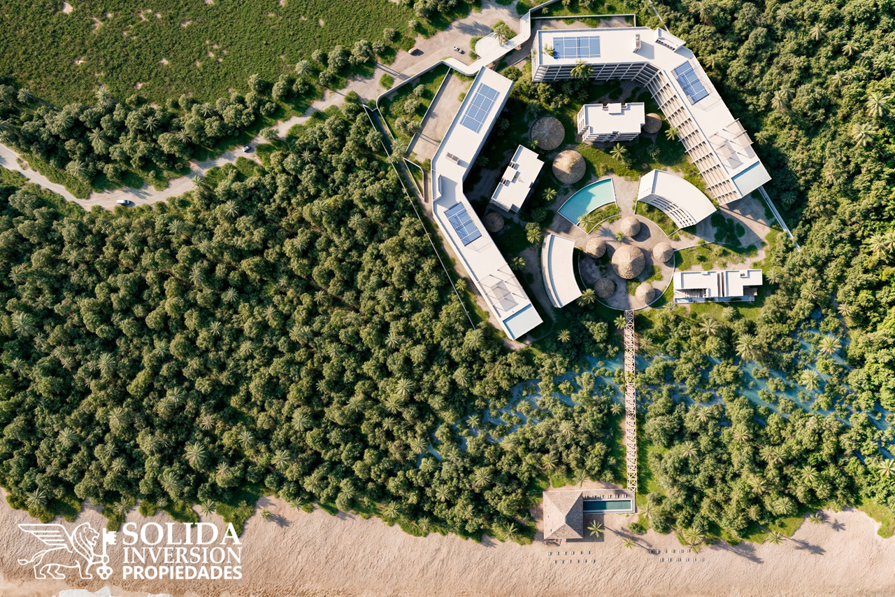OWO, nuevo desarrollo dentro del campo de golf de LITIBÚ - PUNTA DE MITA y con acceso al mar, con amenidades de Lujo como Sauna, Gimnasio, Spa, Rooftop con canchas de tenis, de padel, asoleaderos y camastros con albercas y vista impresionante al mar, a las montañas y al campo de golf. 20,000 mil metros cuadrados de jardines muy bellos con albercas y club de playa privado con Restaurante, Bar, Jacuzzi y alberca ademas de camastros y palapas al nivel de arena con 164 metros lineales de playa..