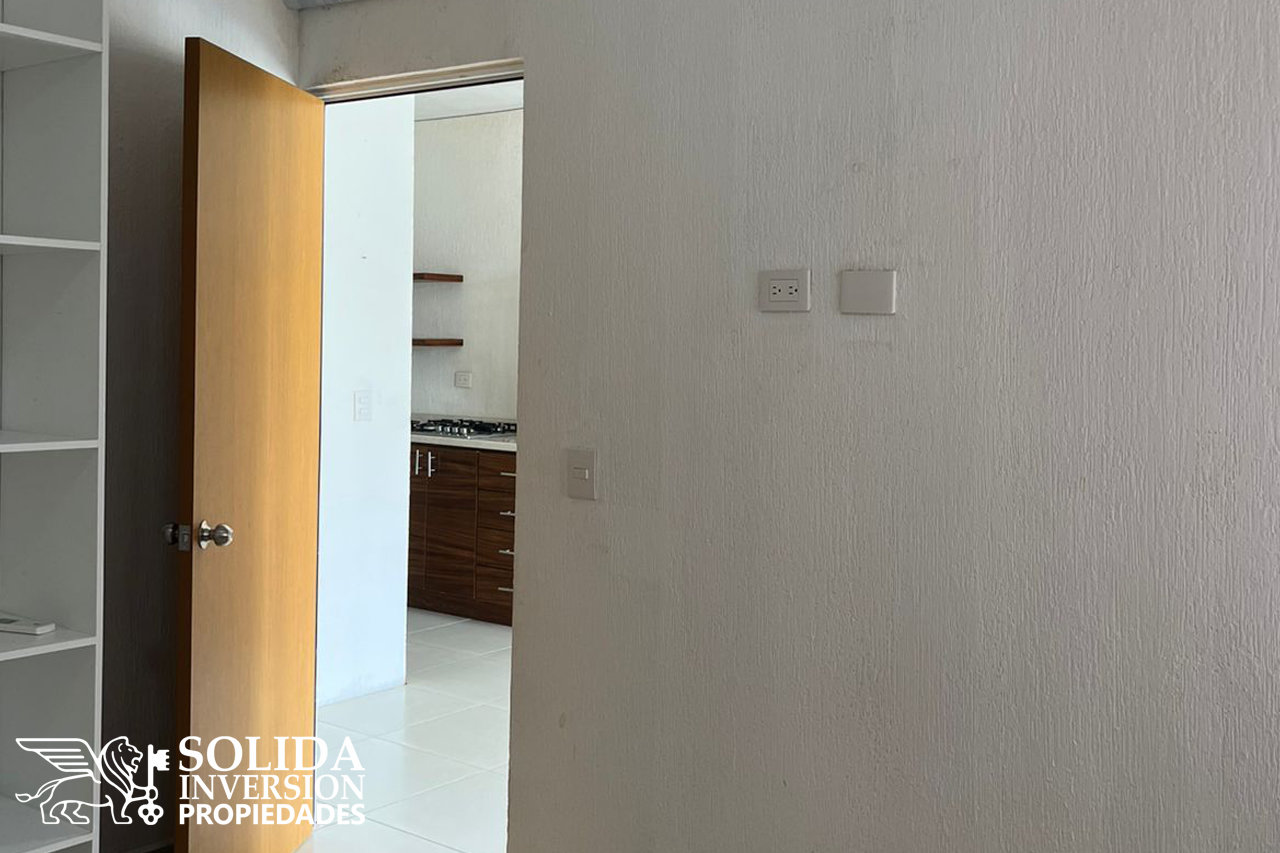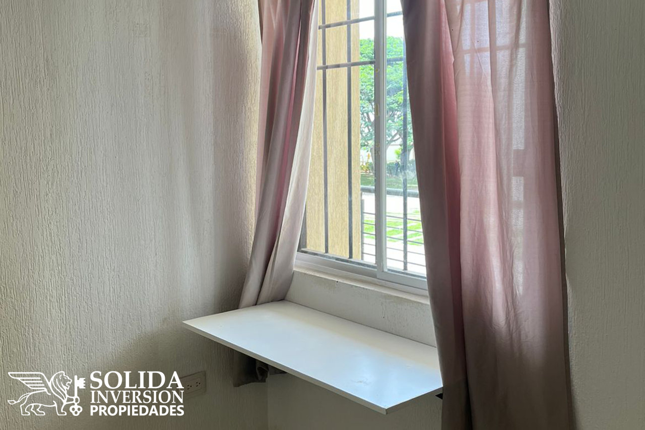 El departamento cuenta con cocina integral, espacios para sala-comedor, recámara principal y recámara secundaria, ambas con clósets, baño completo común, aires acondicionados en recámaras, ventiladores de techo, área de lavado cubierta y estacionamiento para un auto. Se ubica en un primer nivel.