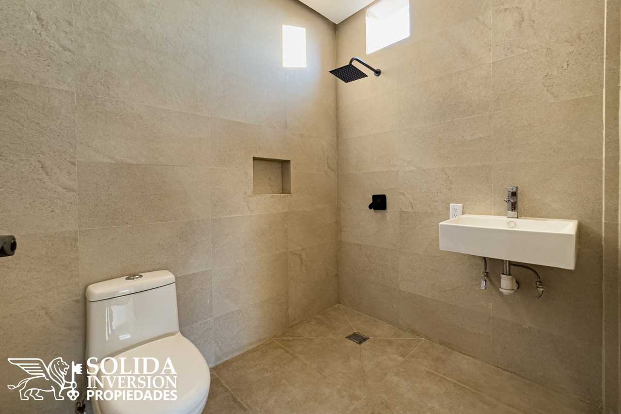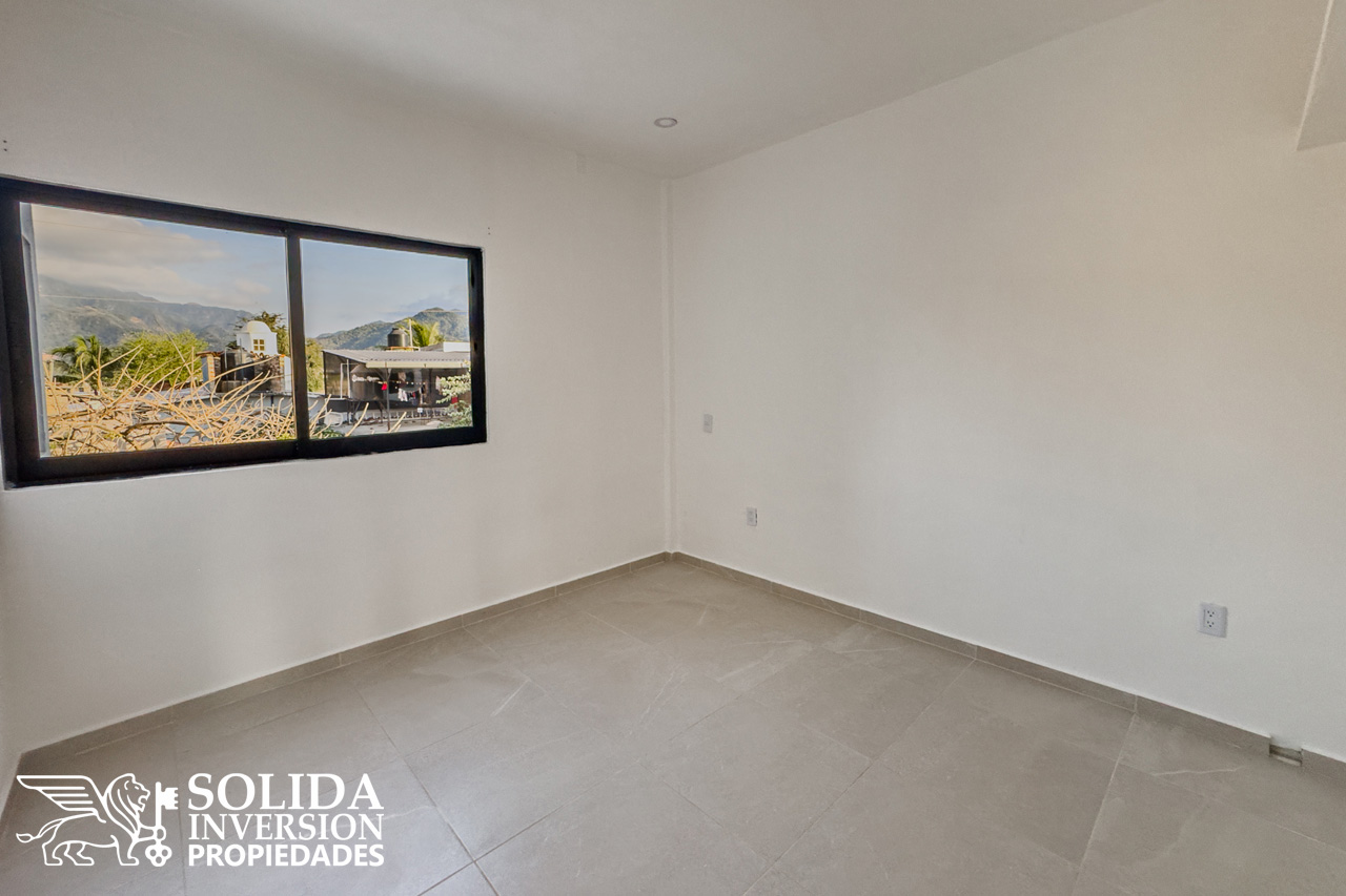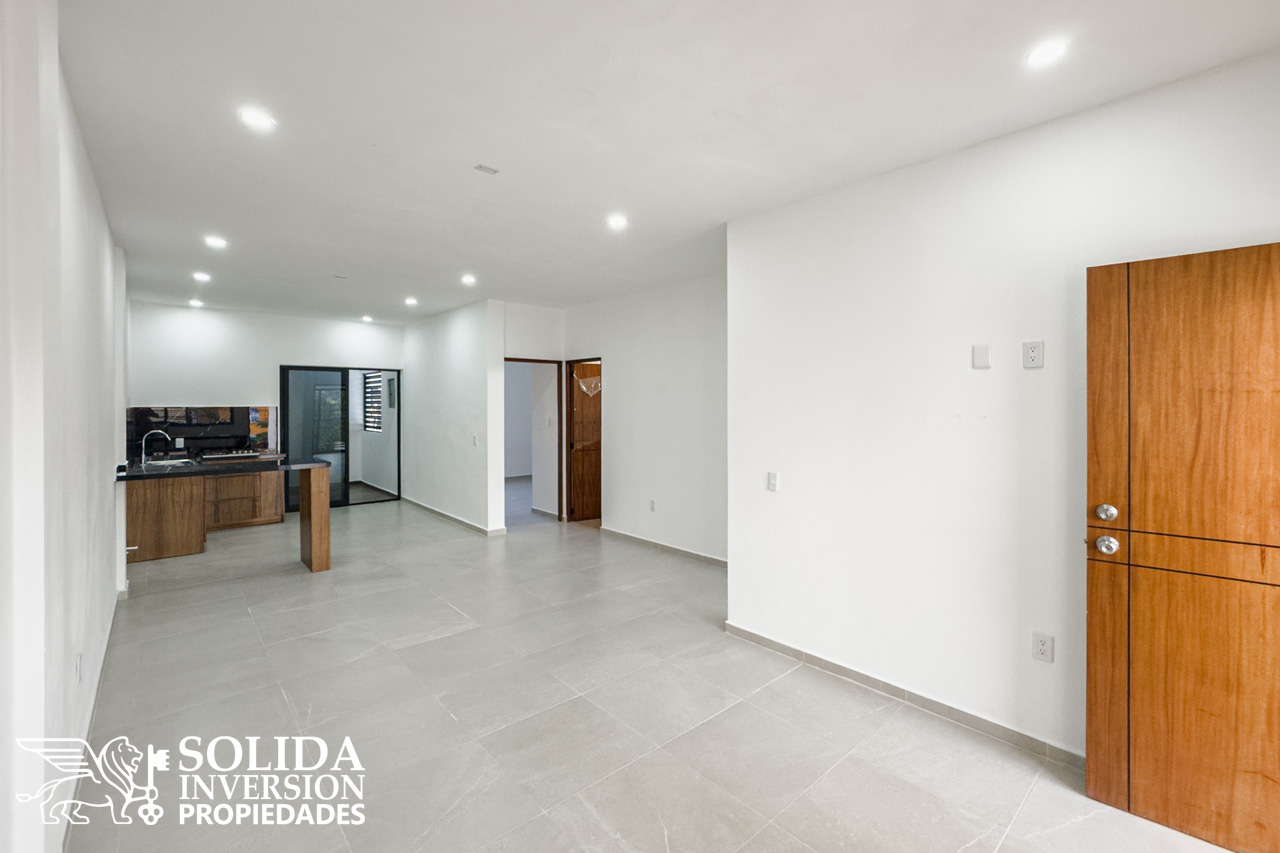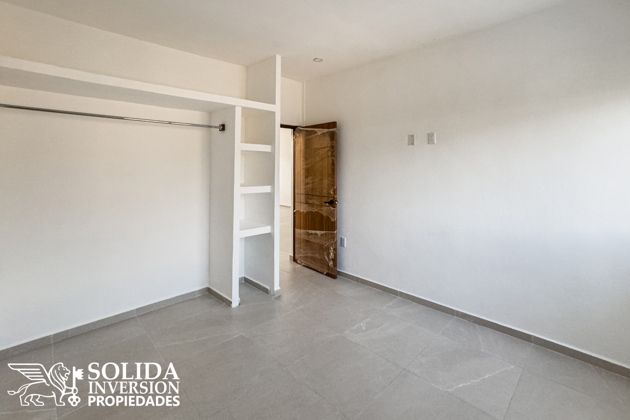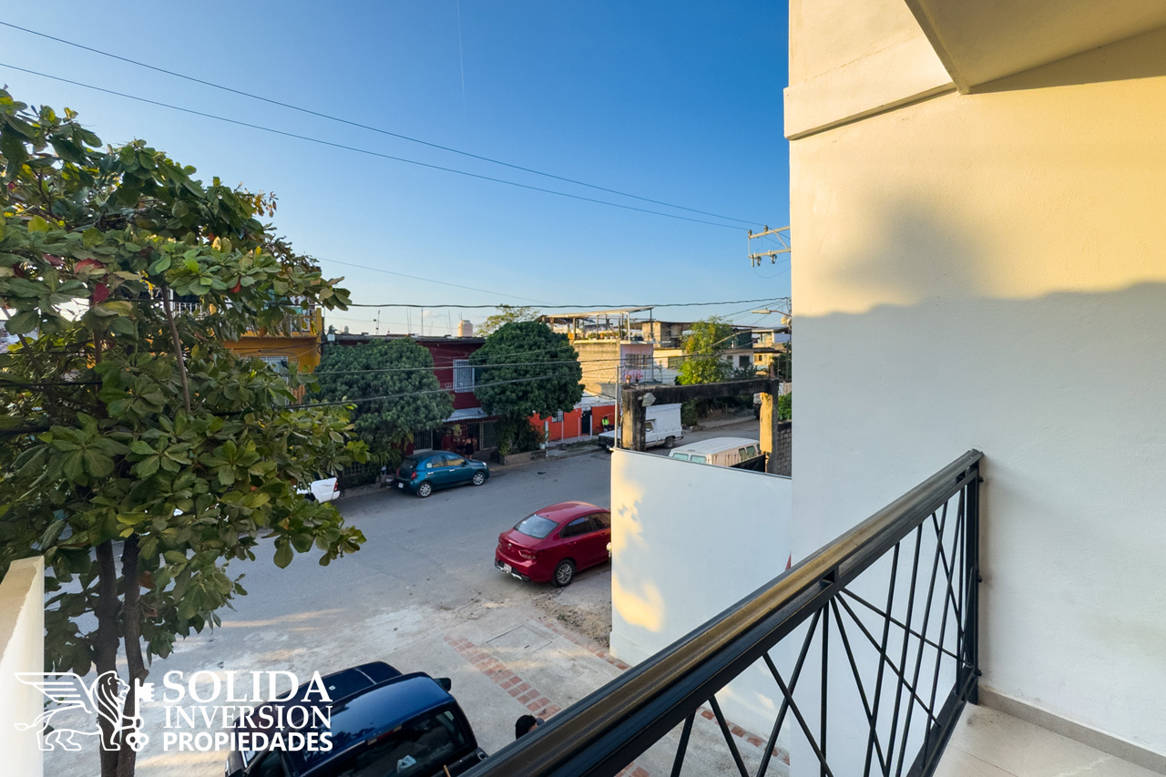 Cada departamento consta de cocina integral con barra, espacios para comedor y sala, área de lavado cubierta, recámara principal con balcón al frente, clóset abierto y baño completo, así como una recámara secundaria con clóset abierto y un baño completo de uso común.