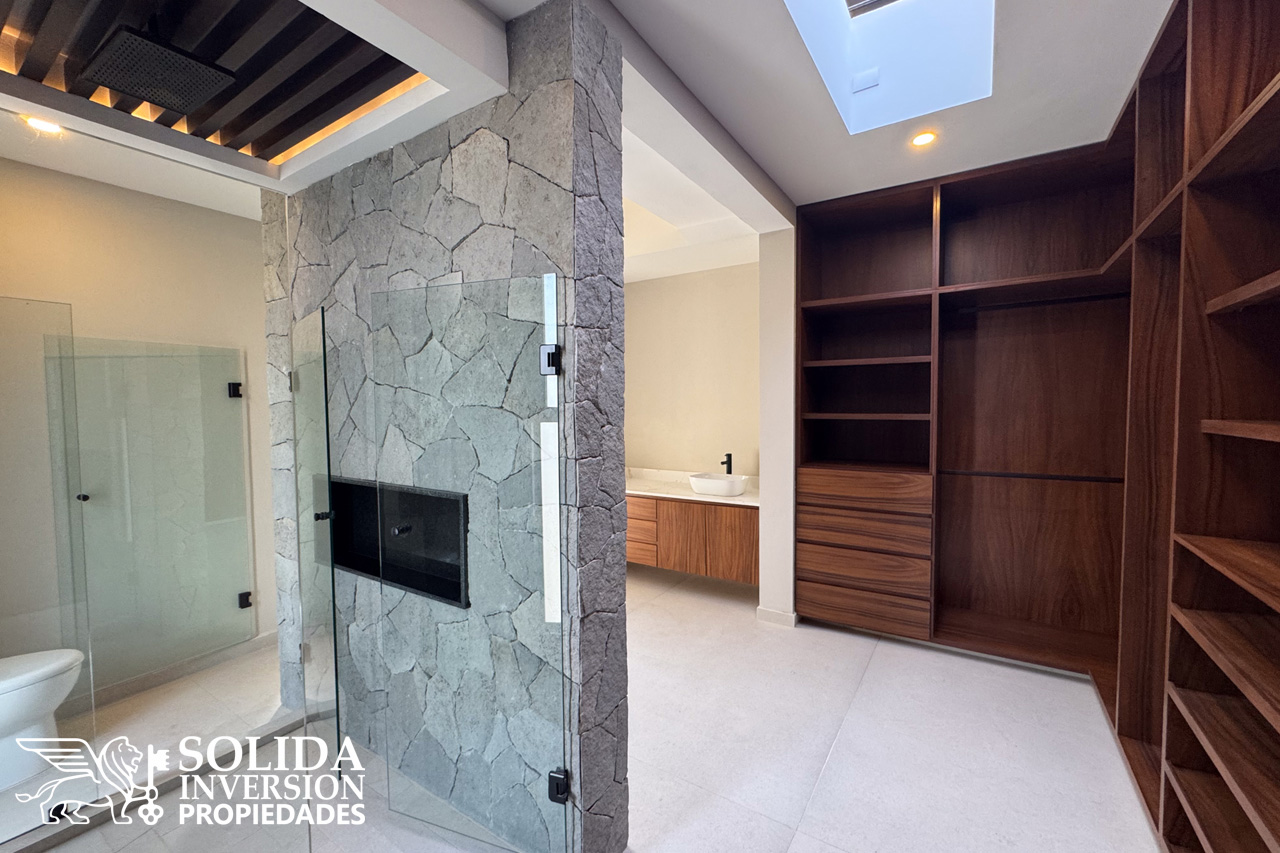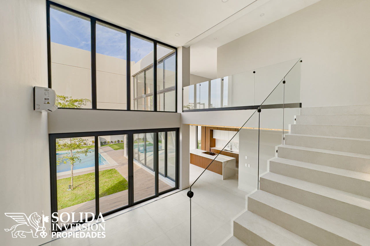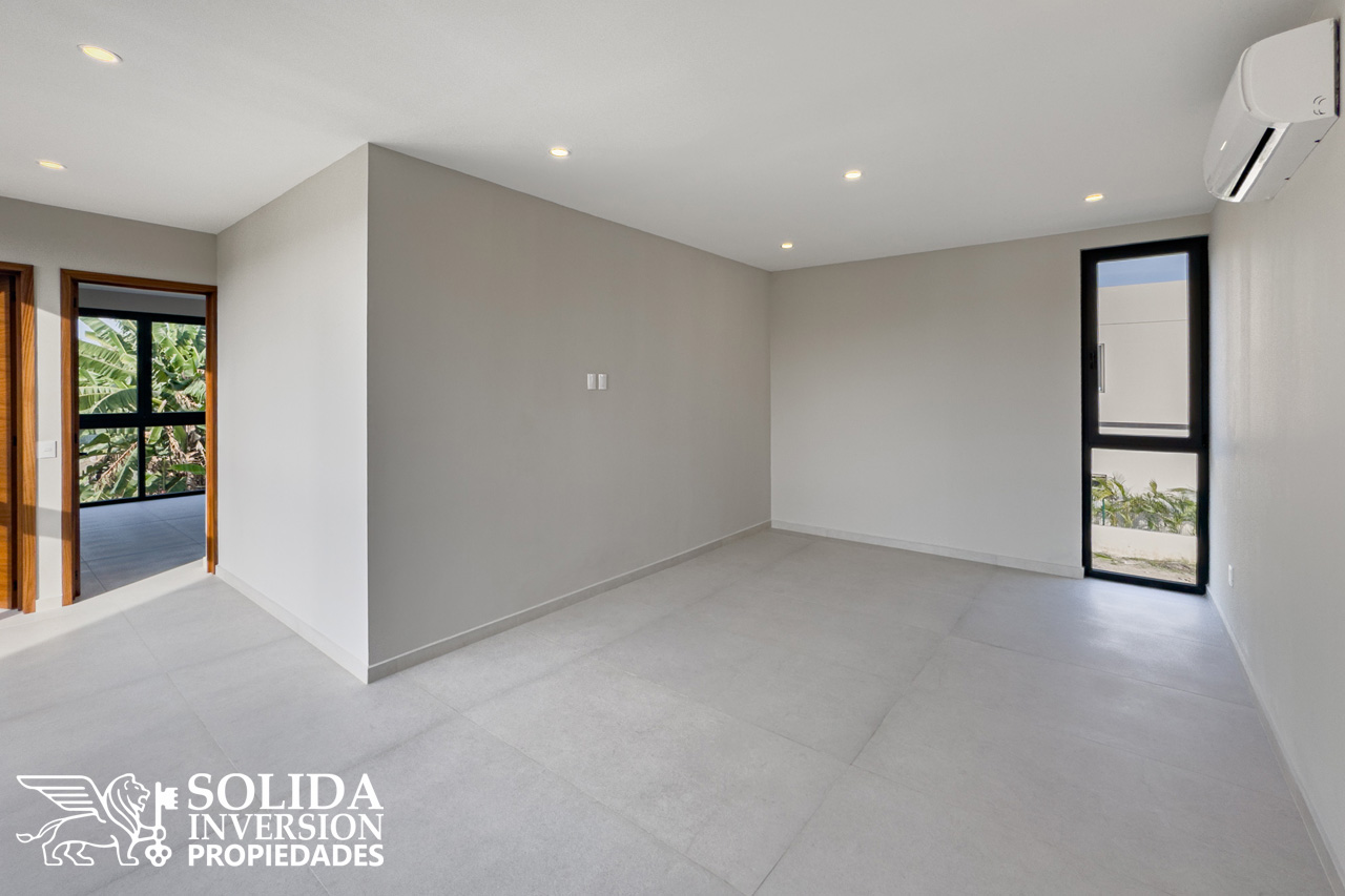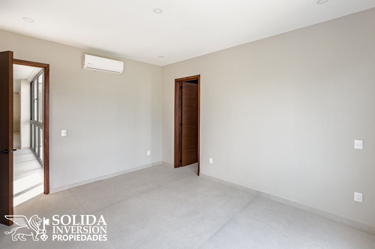 En la planta alta se ubica una sala de estar, la recámara principal con balcón, walkin clóset y baño completo de doble lavabo, así como dos recámaras secundarias con walkin clósets y baños completos.