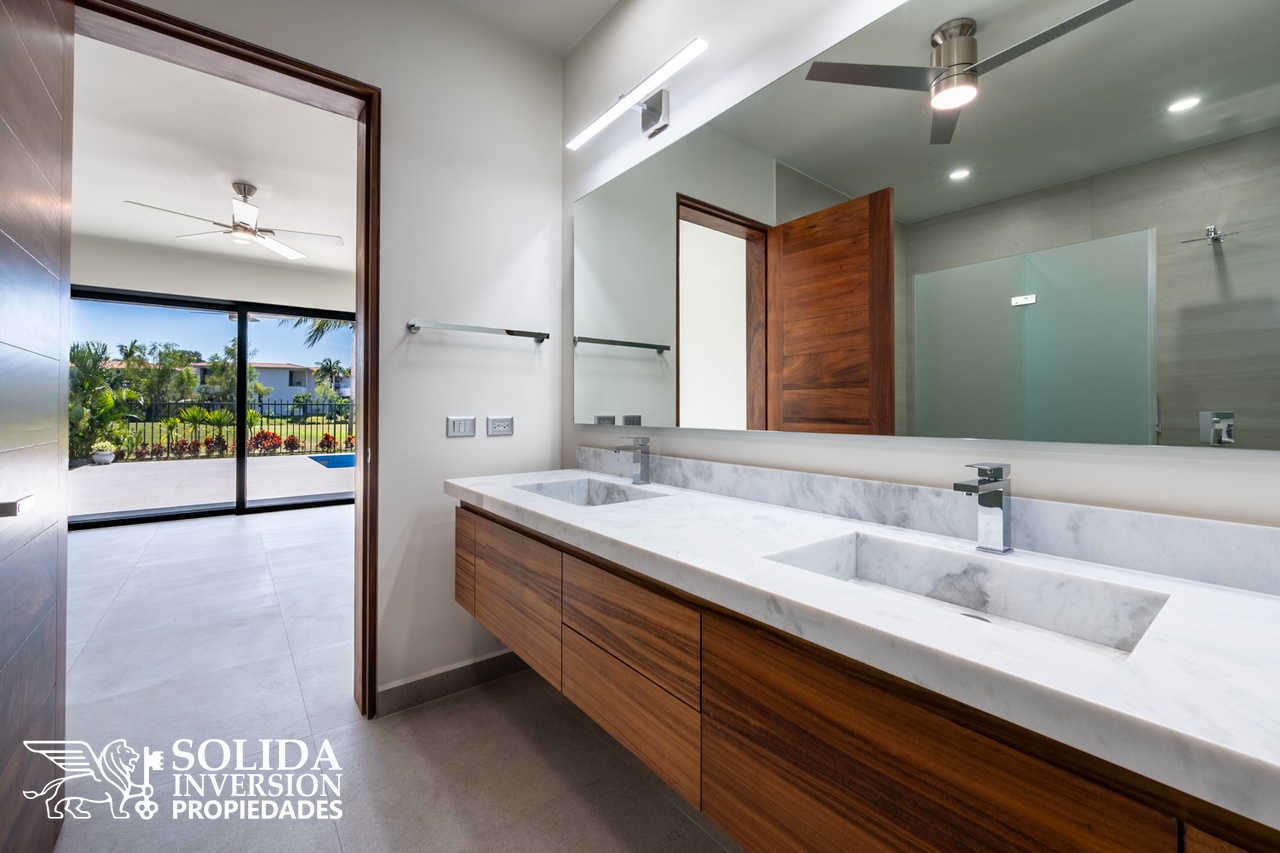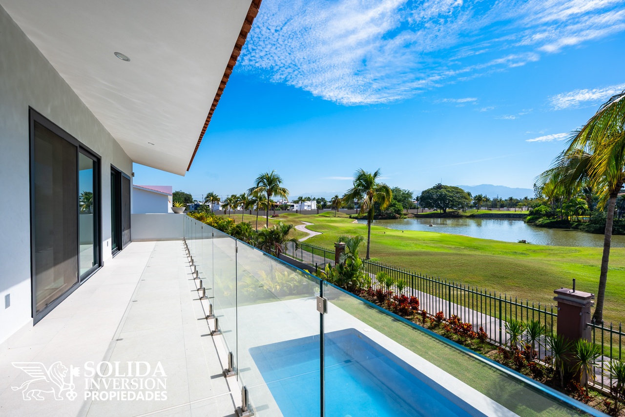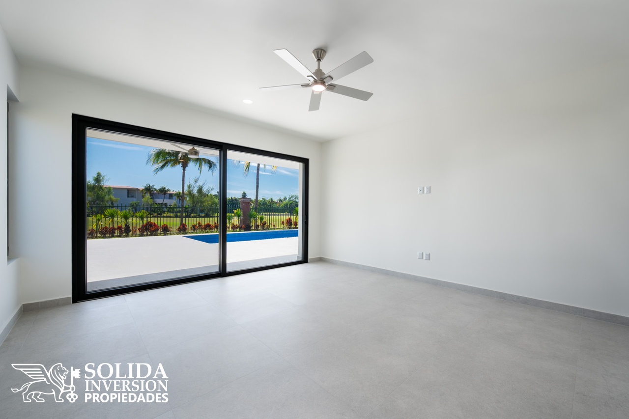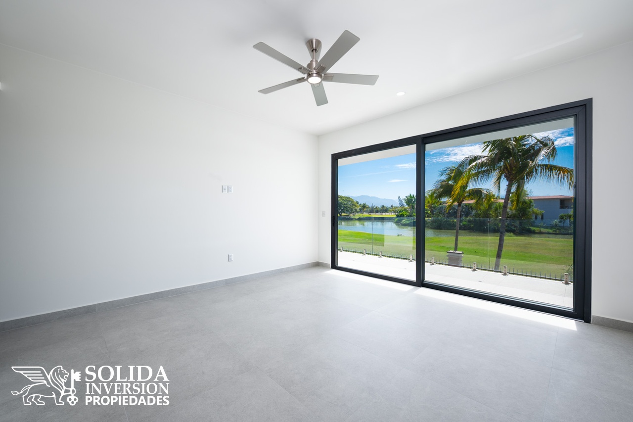La planta alta cuenta con recámara principal y dos recámaras secundarias, las tres con vistas al campo de golf, además de un segundo estudio con baño completo, el cual puede ser utilizado como family room o recámara adicional.