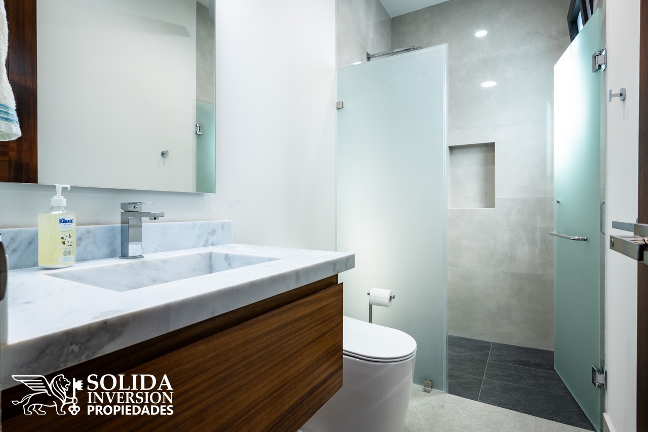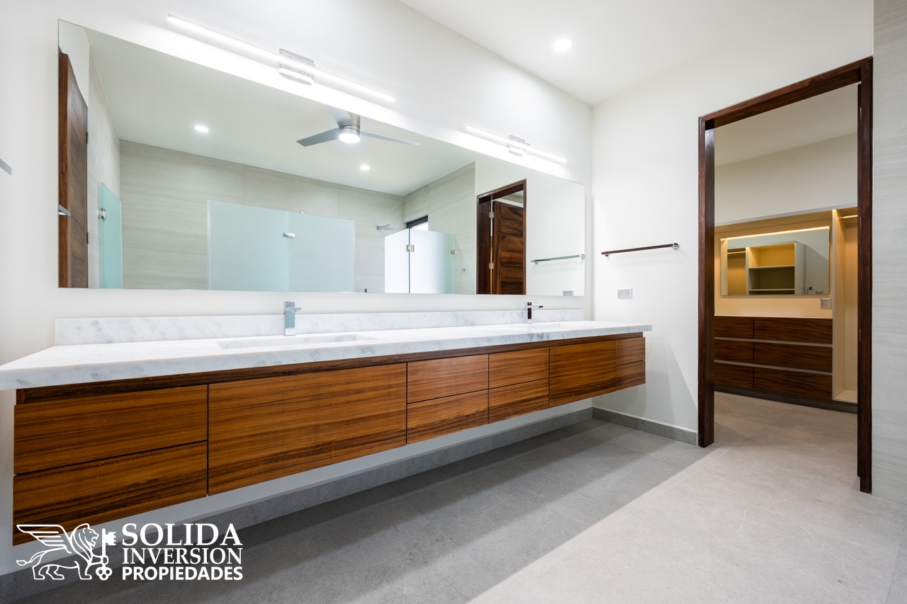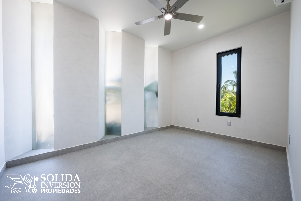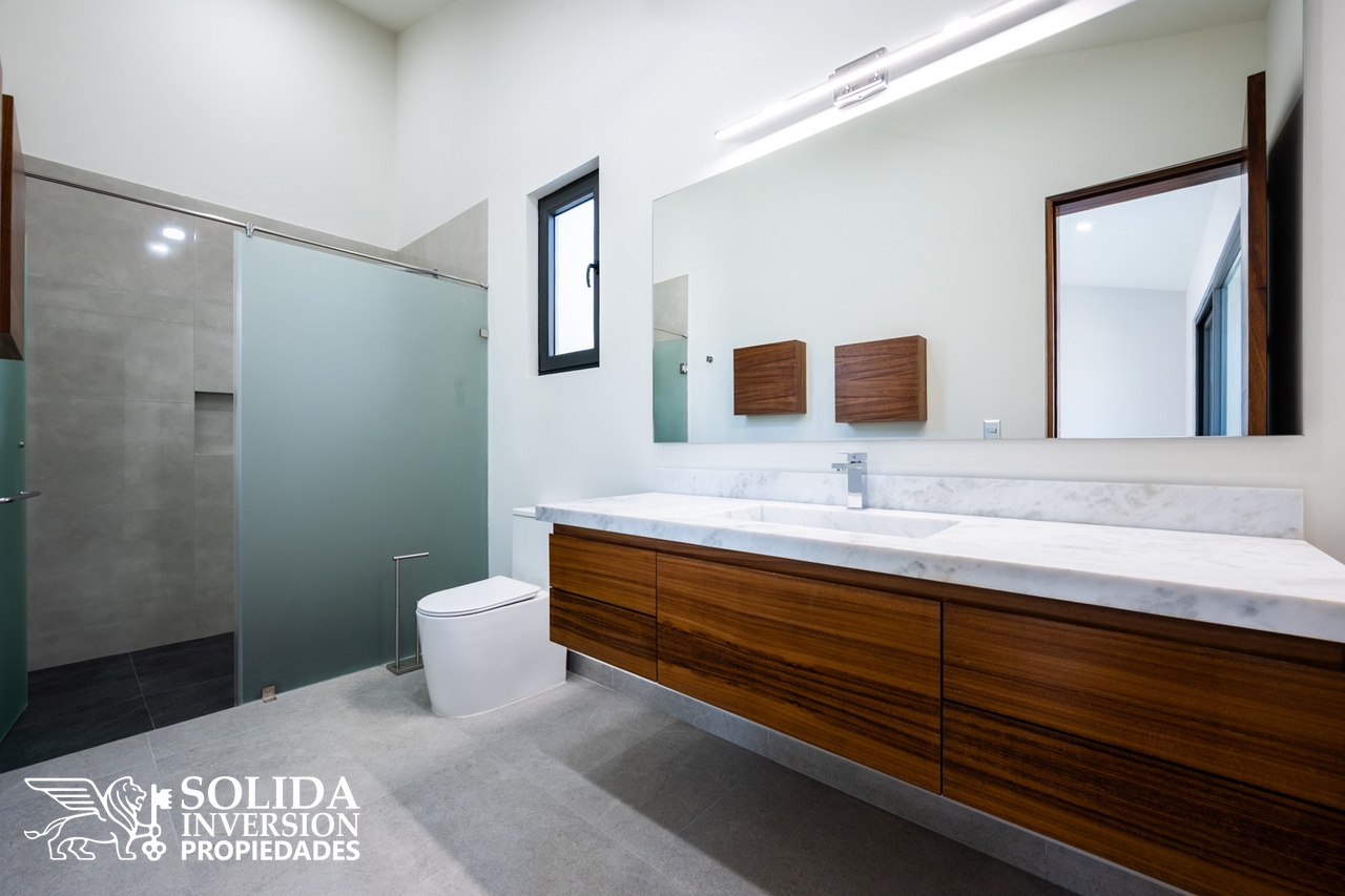 La planta alta cuenta con recámara principal y dos recámaras secundarias, las tres con vistas al campo de golf, además de un segundo estudio con baño completo, el cual puede ser utilizado como family room o recámara adicional.