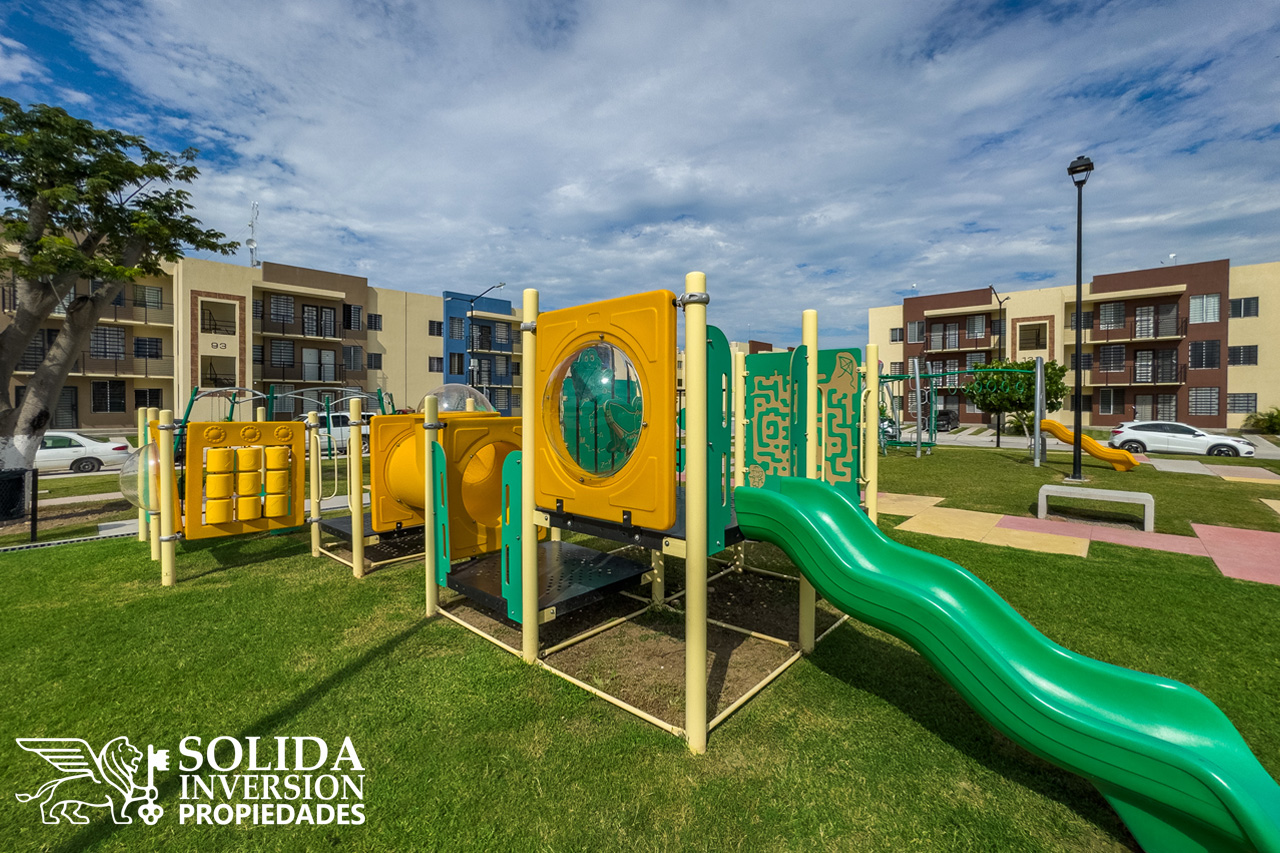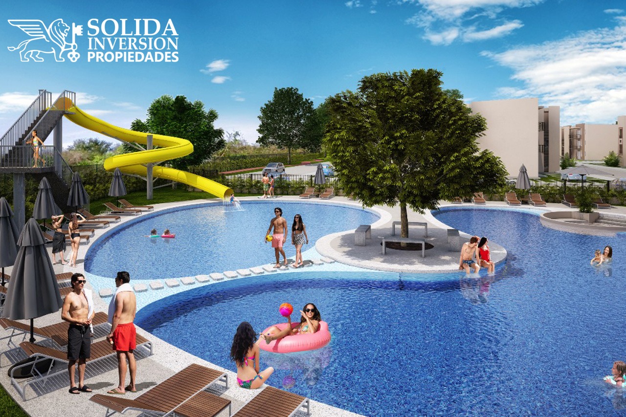 Desarrollo de departamentos con amplias amenidades, como alberca, casa club, parques y áreas verdes.