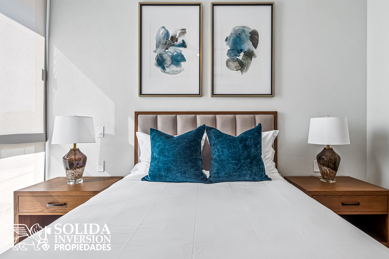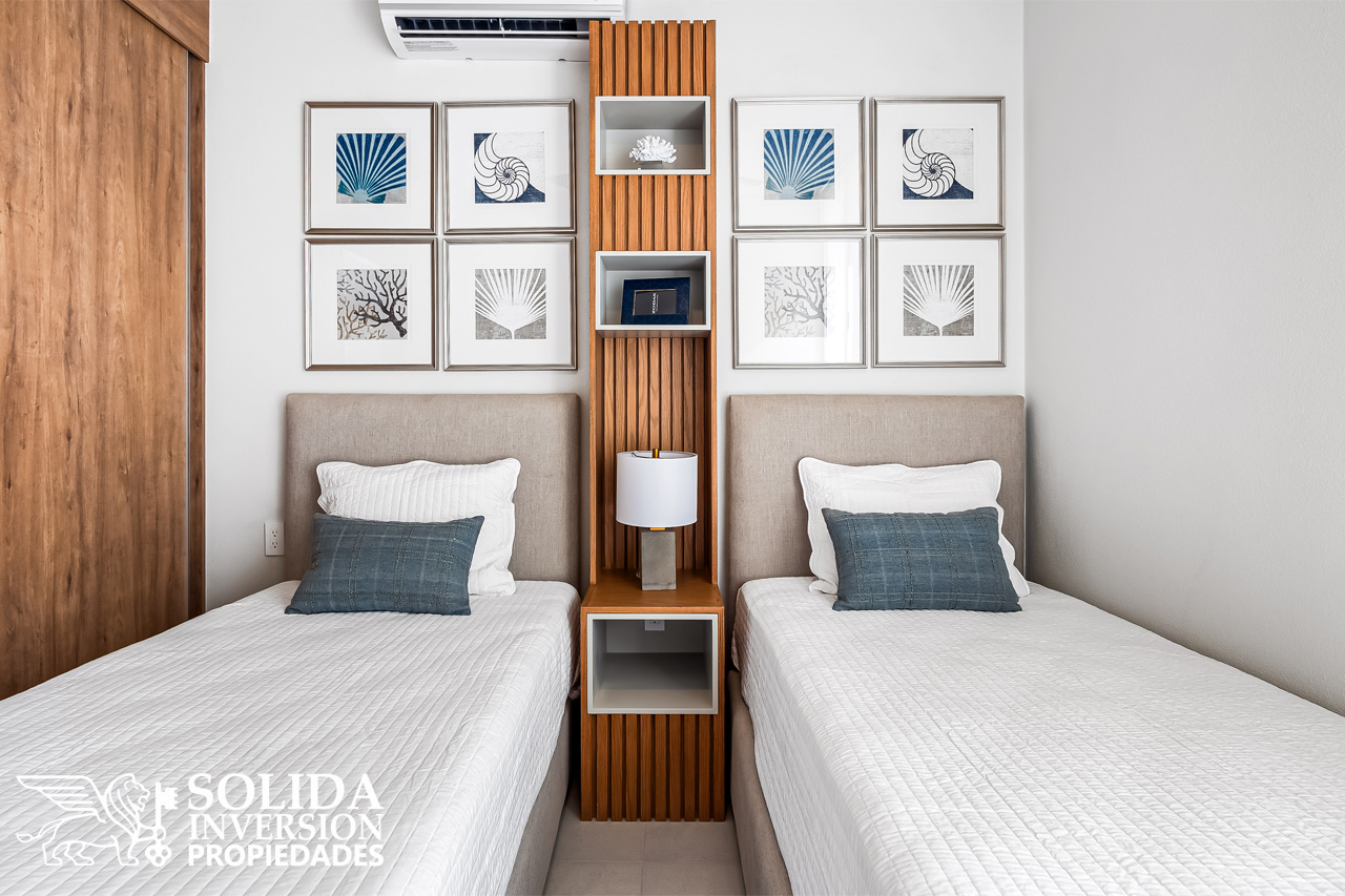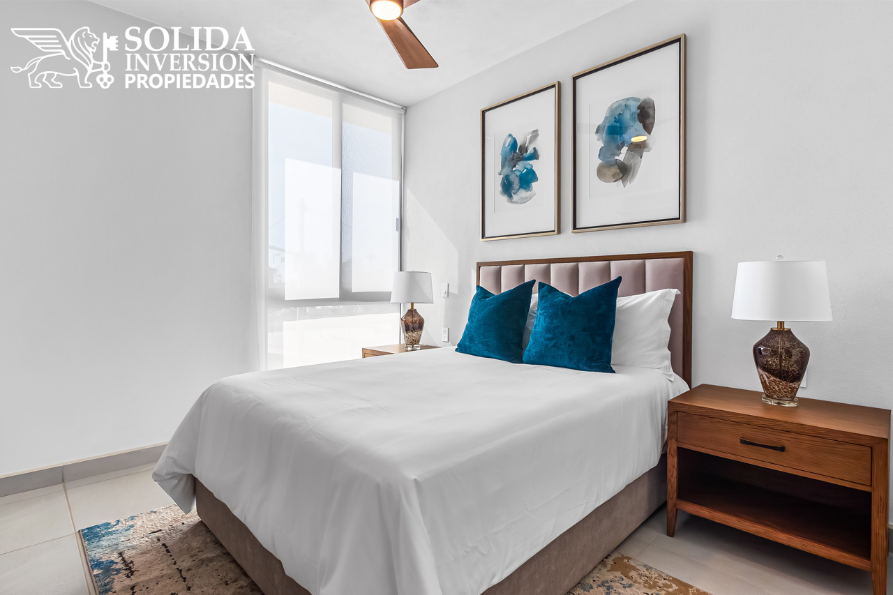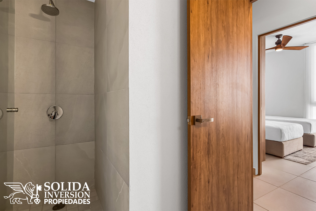 El departamento 2316*, modelo con Terraza B, cuenta con dos recámaras y dos baños completos, además de cocina integral con barra y alacena, sala comedor, área de lavado y un cajón de estacionamiento sin techar. Ubicado en un cuarto nivel*