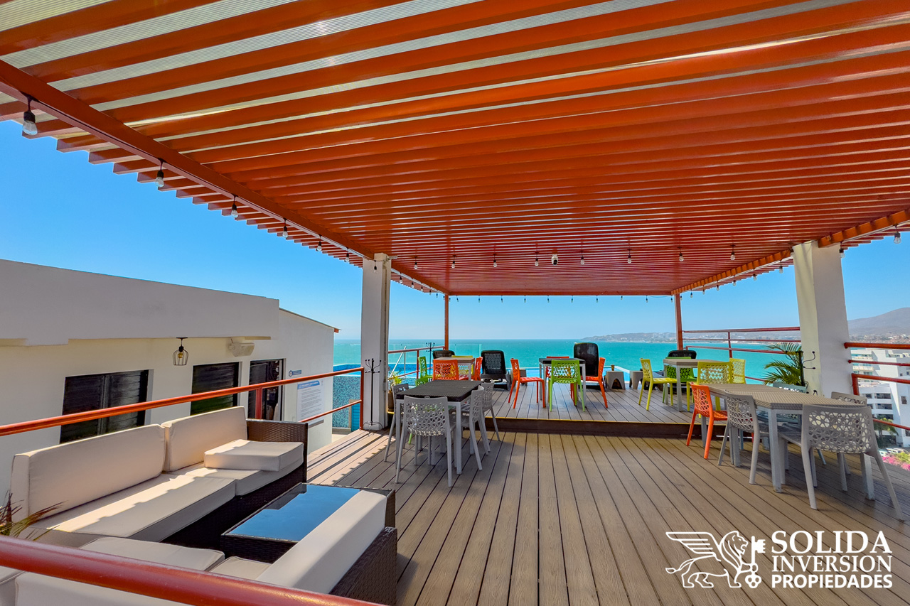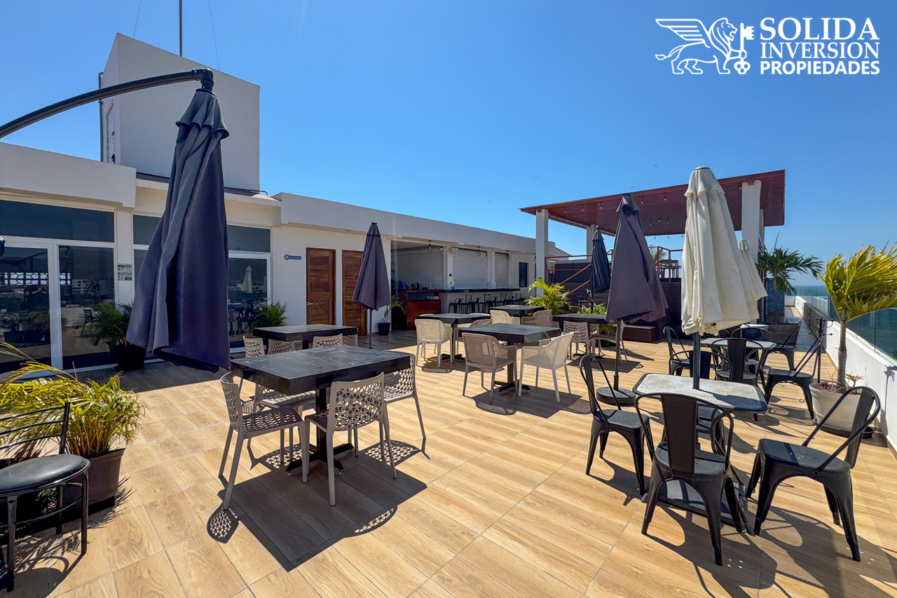La propiedad cuenta con cocina integral con parrilla eléctrica, espacio para sala-comedor con acceso a balcón, área de lavado, baño completo común y una recámara con acceso directo a balcón. Se ubica en un tercer nivel, el edificio cuenta con elevador, rooftop con alberca, bar y restaurante.