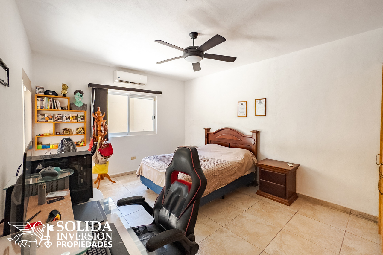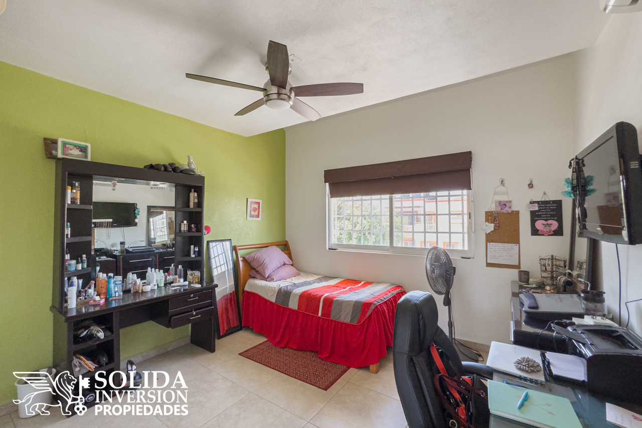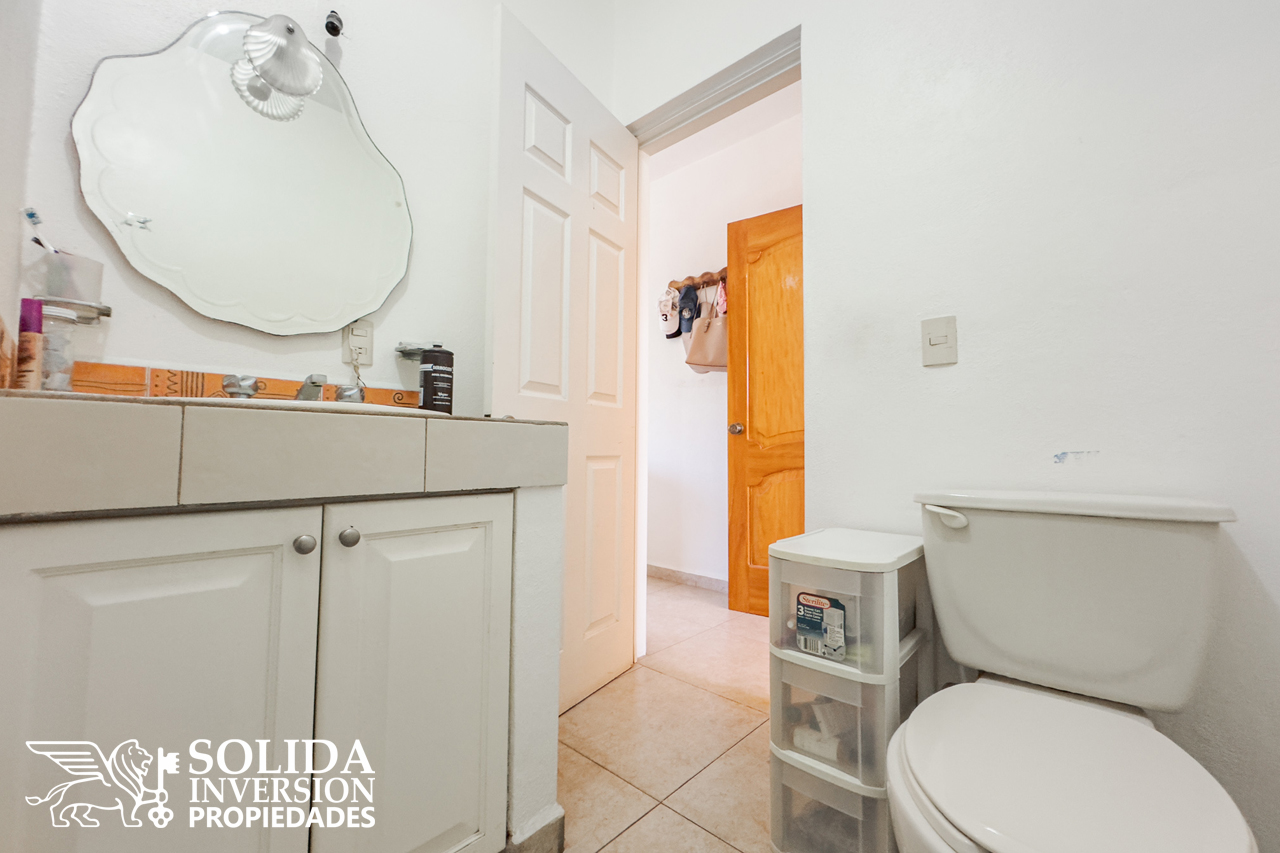 En la planta alta, se encuentran la recámara principal con balcón, espacio de trabajo, walkin clóset y baño completo, una tercera recámara secundaria con clóset y baño completo, el cuarto de lavado y una terraza descubierta.