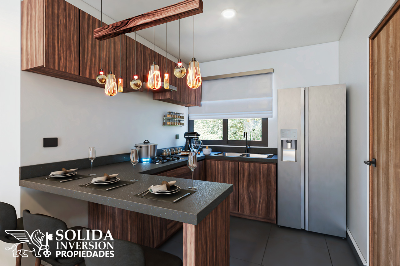 Ubicado en un tercer nivel, el departamento 838* cuenta con cocina integral con barra, espacios para comedor y sala con acceso a terraza.