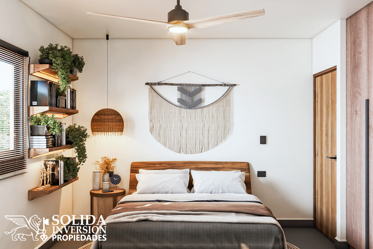 El departamento también se integra por una recámara principal con baño completo y espacio para vestidor-clóset, una recámara secundaria con baño completo y espacio para clóset, un medio baño en área social, área de lavado cubierta con espacio para clóset de blancos y estacionamiento para dos autos.