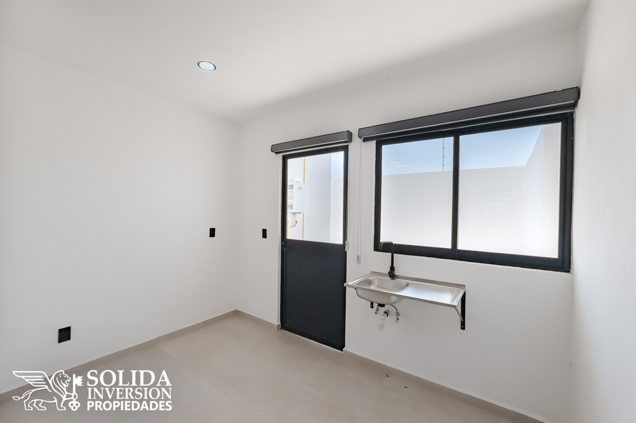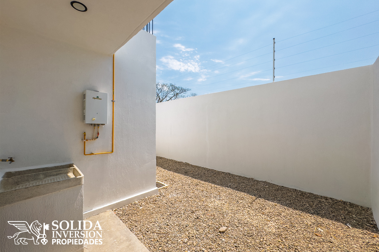 La casa de tres niveles, cuenta en su planta baja con espacio para cocina, comedor, sala con doble altura, una recámara con espacio para clóset, baño completo común y un patio posterior con área de lavado.