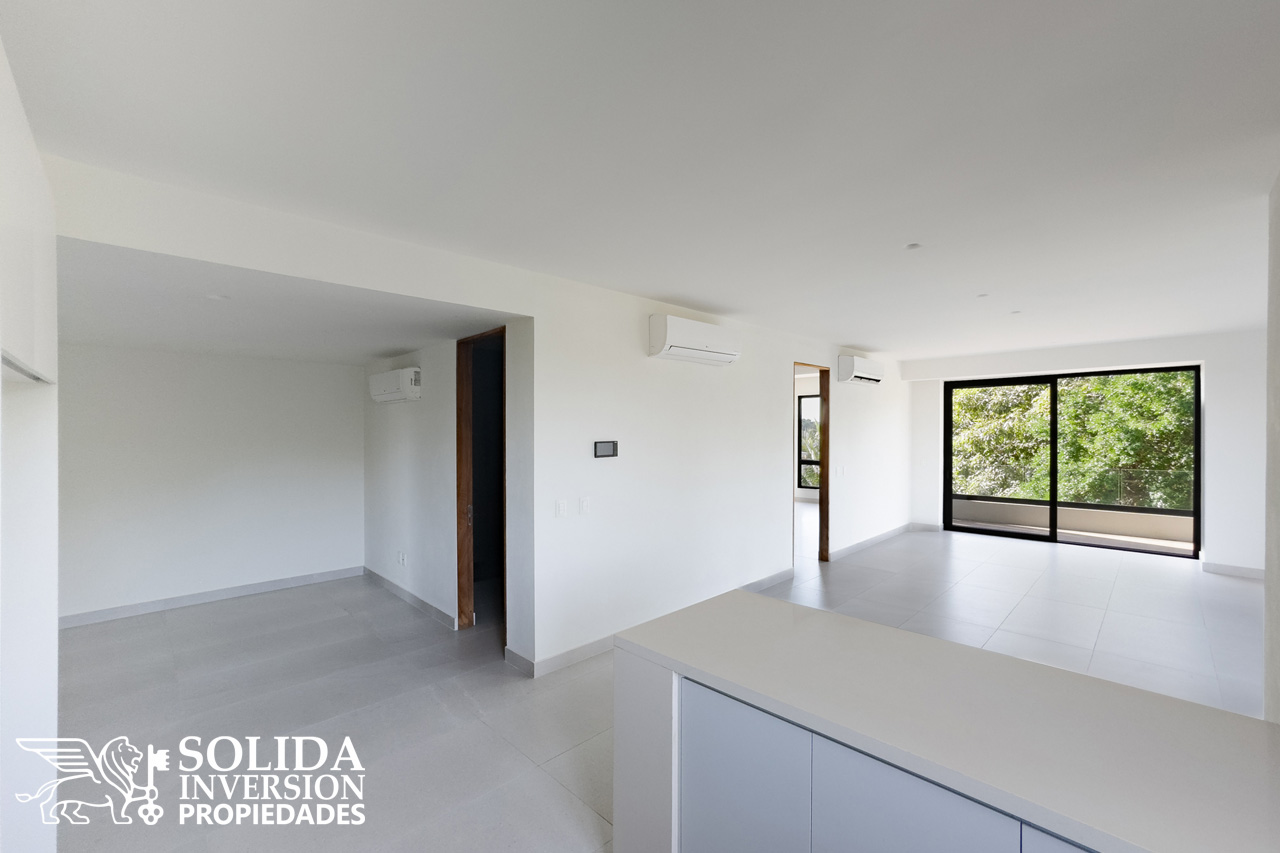 Situado en el segundo nivel del área más pacifica del desarrollo, el departamento se compone por cocina integral con barra, comedor, sala con acceso directo a la terraza, estudio o flex con baño completo, recámara principal con acceso directo a la terraza, vestidor y baño completo, recámara secundaria con clóset y baño completo, área de lavado y estacionamiento subterráneo con bodega.