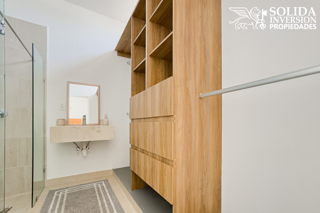 En la planta alta se encuentra la recámara principal, la cual cuenta con walkin clóset y un baño completo de doble lavabo, también se ubican dos recámaras secundarias con clóset, las cuales comparten un baño completo. El área de lavado también se localiza en el segundo nivel.