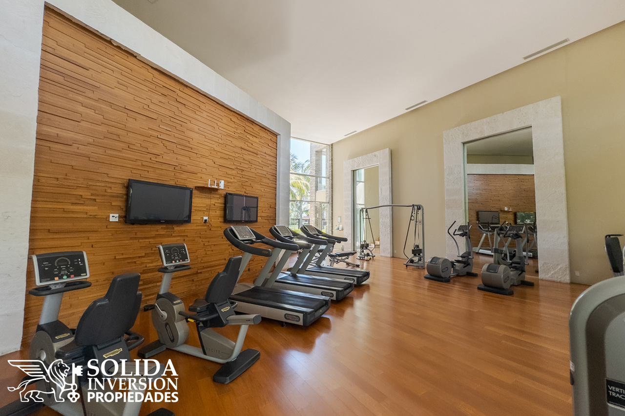 Con la comodidad que brinda una planta baja, rodeada de espejos de agua, este departamento ofrece agradables espacios abiertos, como la cocina integral con barra y campana, comedor y sala con acceso directo a una terraza techada al frente el departamento, con vista a la alberca y al campo de golf.