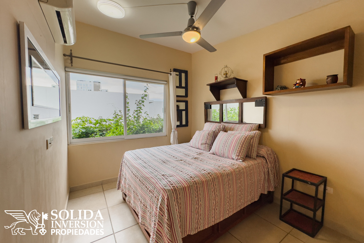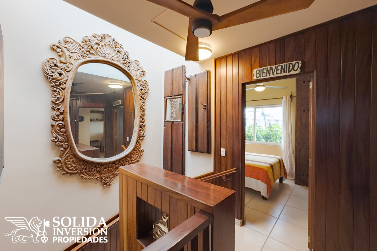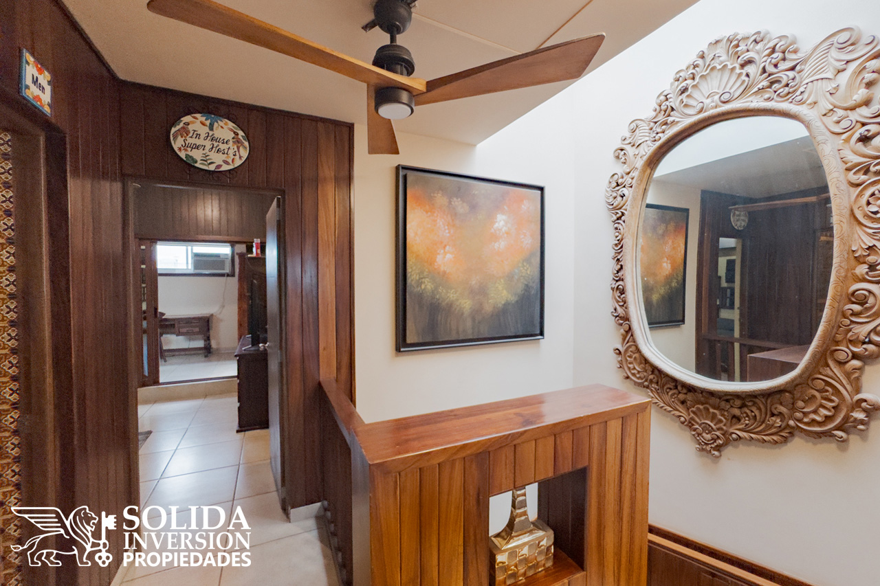 En planta alta tenemos la recámara principal ampliada, con balcón, acceso secundario desde el balcón, clósets y baño completo. Tambien encontraremos dos recámaras secundarias con clósets, las cuales comparten un baño completo común.