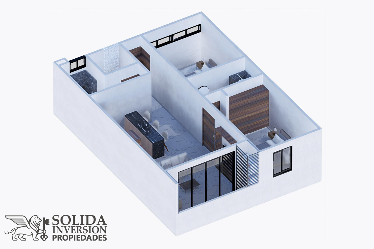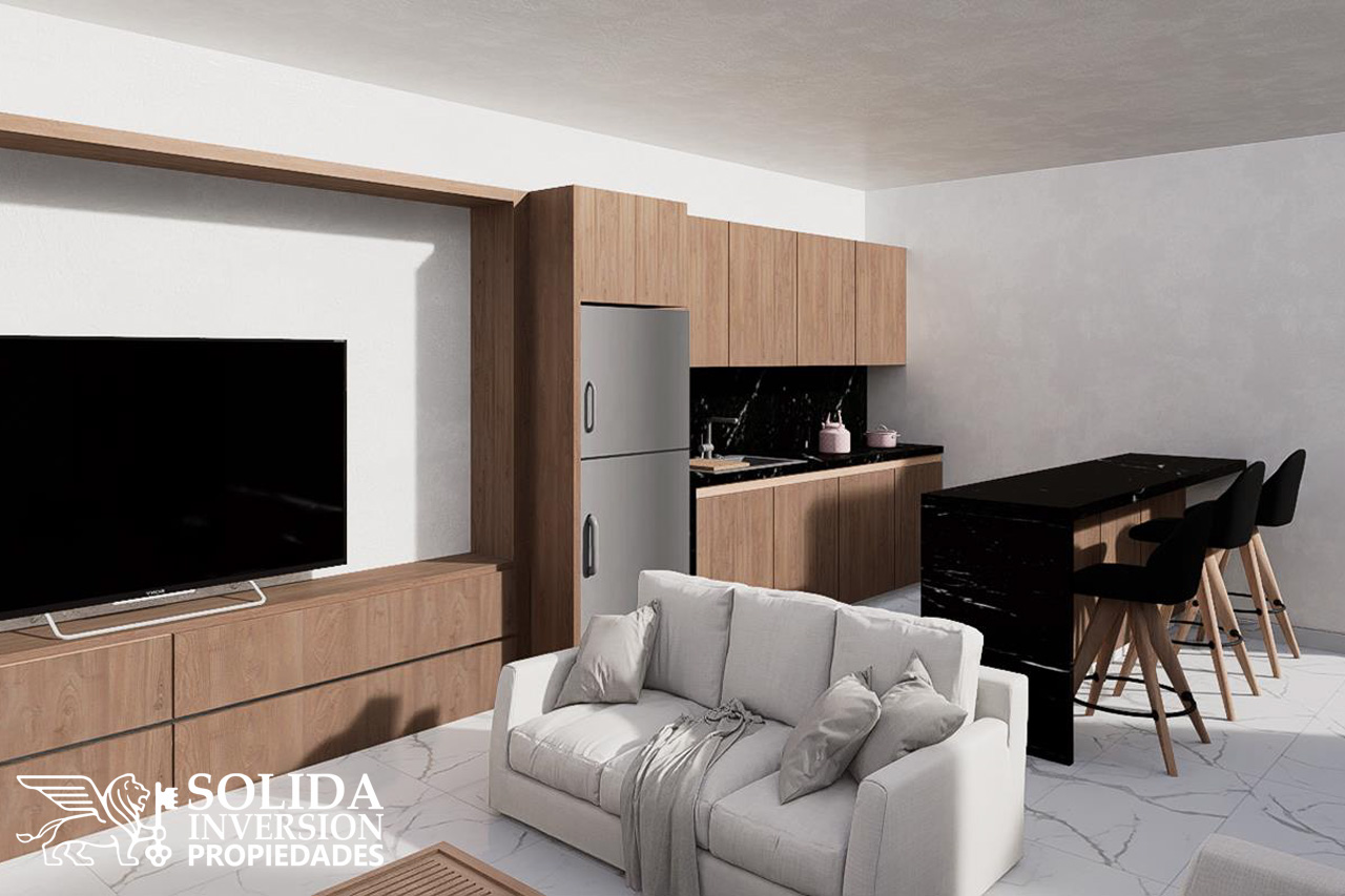 El departamento 314* ubicado en un tercer nivel, contará con una cocina integral con barra, sala con acceso al balcón y aire acondicionado, recámara principal con clóset, baño completo y aire acondicionado, recámara secundaria con clóset y aire acondicionado, así como un segundo baño completo en área social, área de lavado y estacionamiento para un auto.
