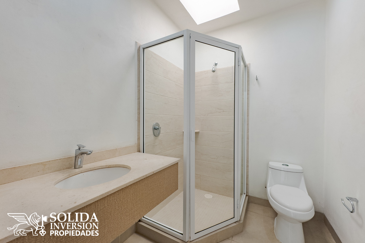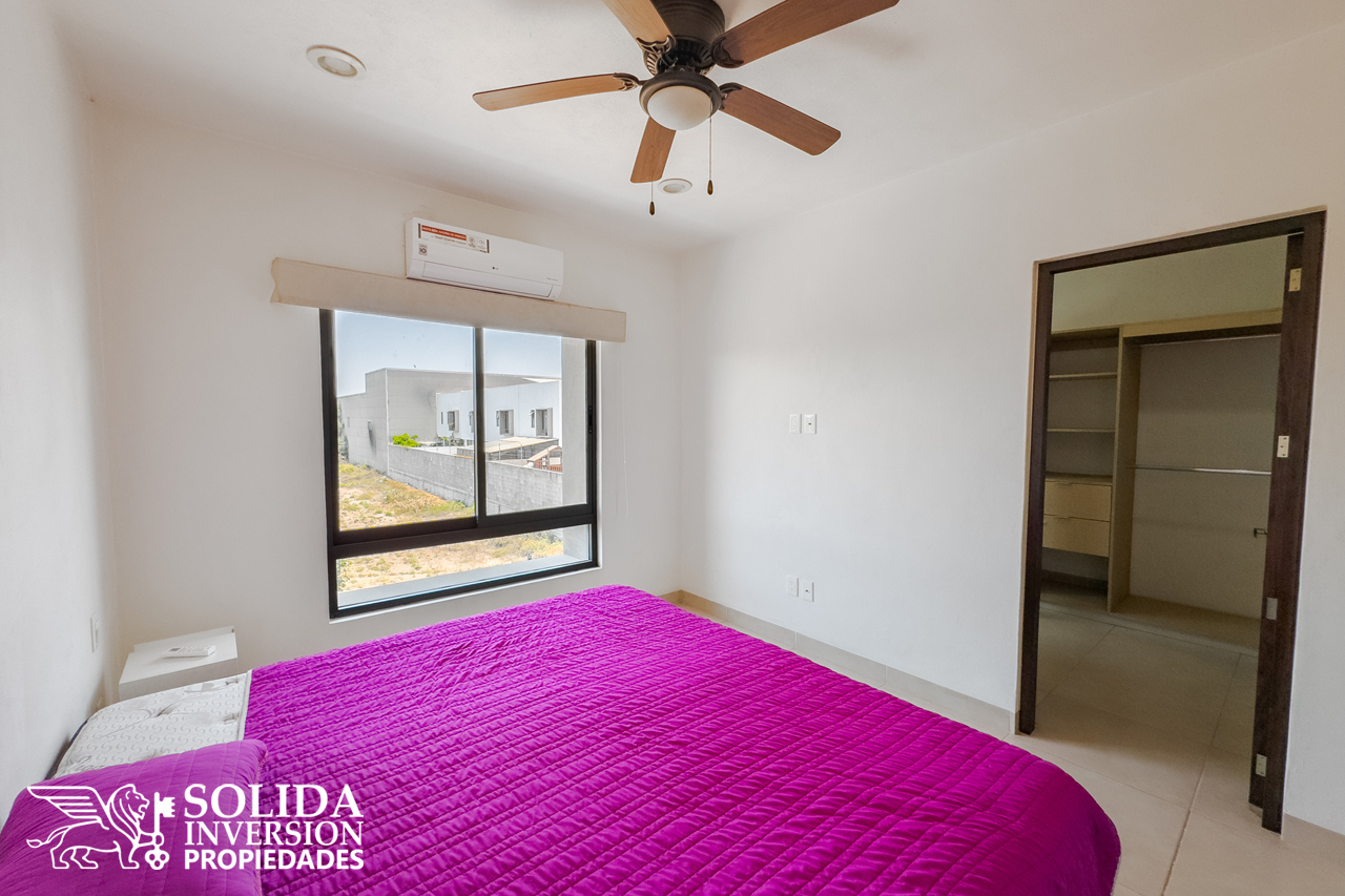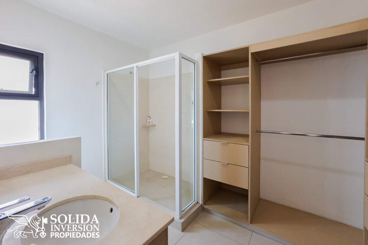 En la planta alta, se encuentra la recámara principal con walking clóset y baño completo, dos recámaras secundarias con clósets y un baño completo común, para el servicios de las recámaras secundarias.