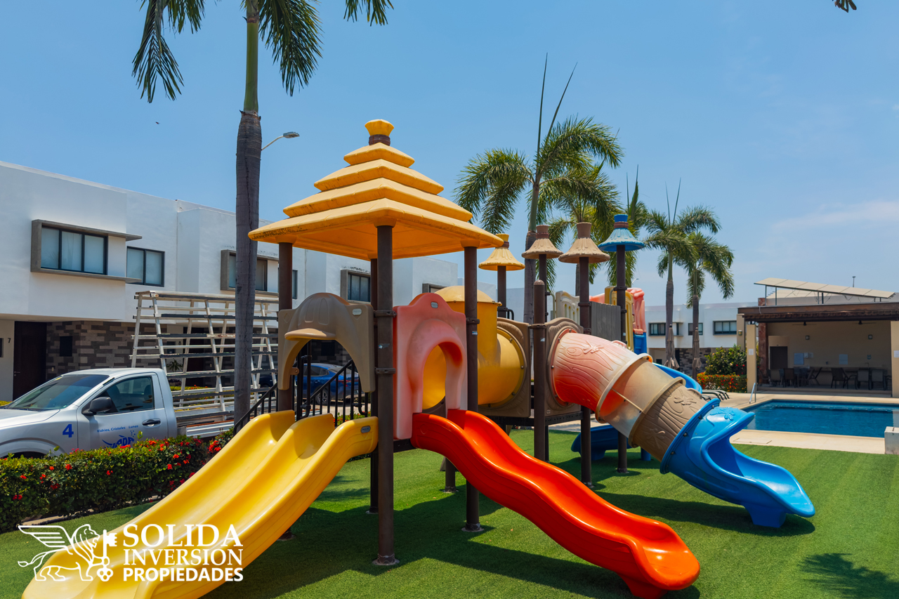 Distribuido en dos niveles, casa LAS GARZAS se compone en su planta baja, por espacios como la cocina integral con barra, sala y comedor con acceso directo al patio trasero y un medio baño para el área social.