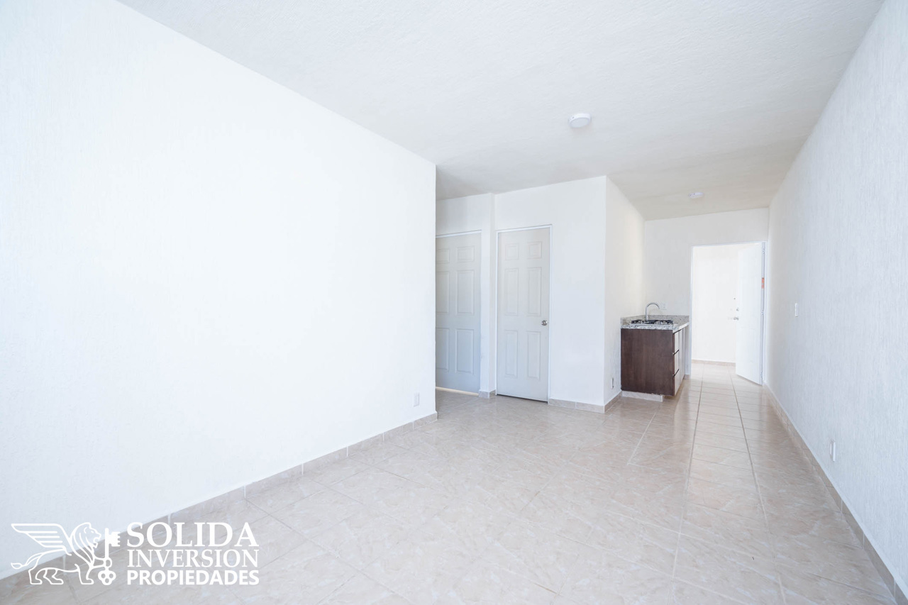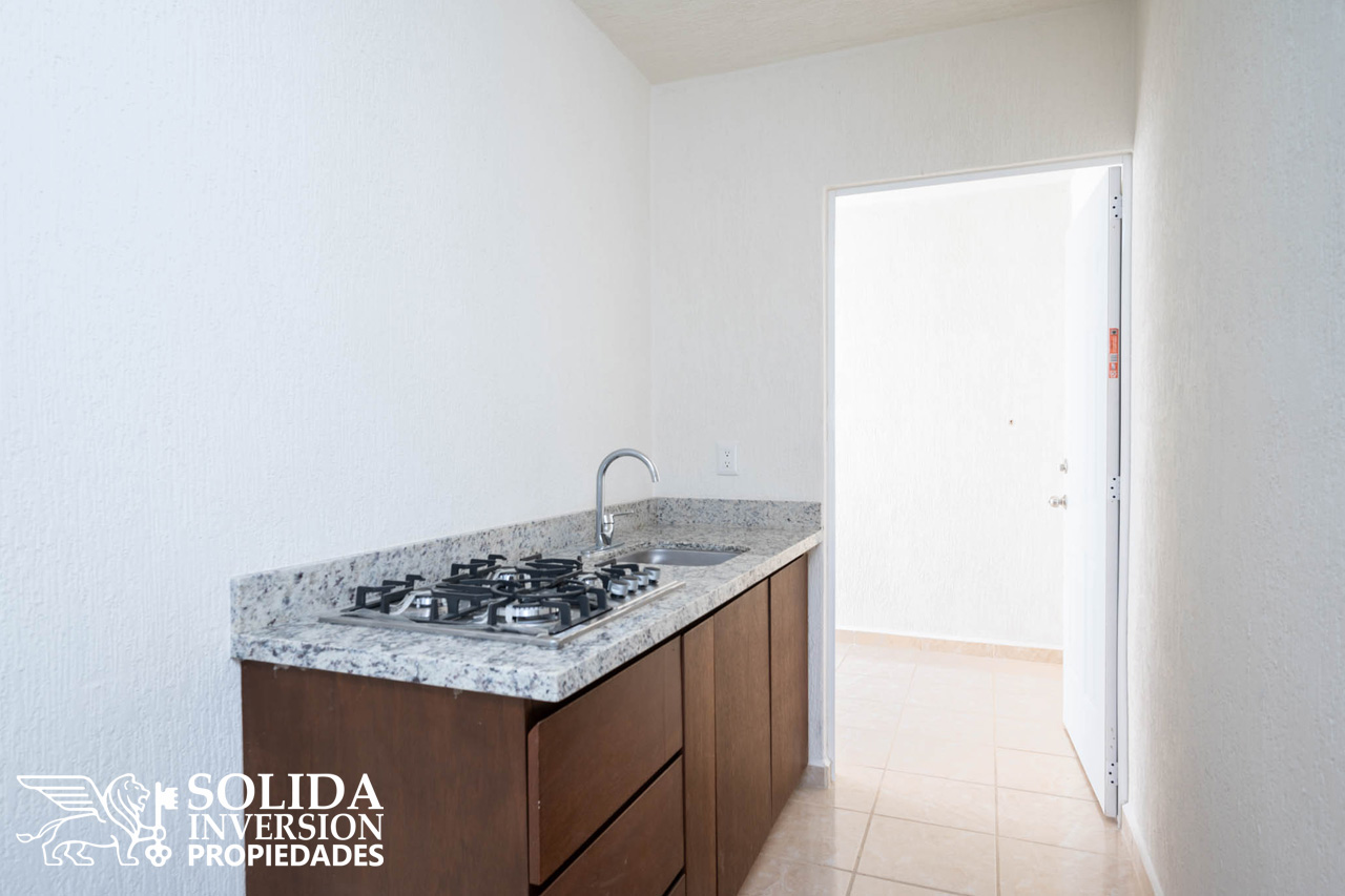 El departamento ubicado en una planta media*, cuenta con cocina integral, espacios para sala, cocina, patio de servicio con área de lavado, recámara principal con espacio para clóset, recámara secundaria con espacio para clóset, baño completo común, preparación para aires acondicionados y estacionamiento para un auto.
